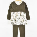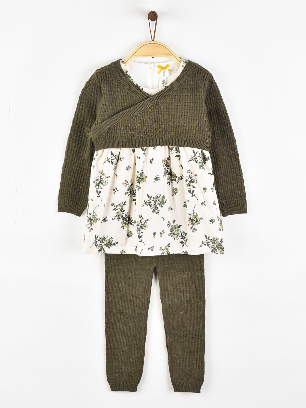 סט סריג עם פרחים - זית