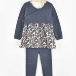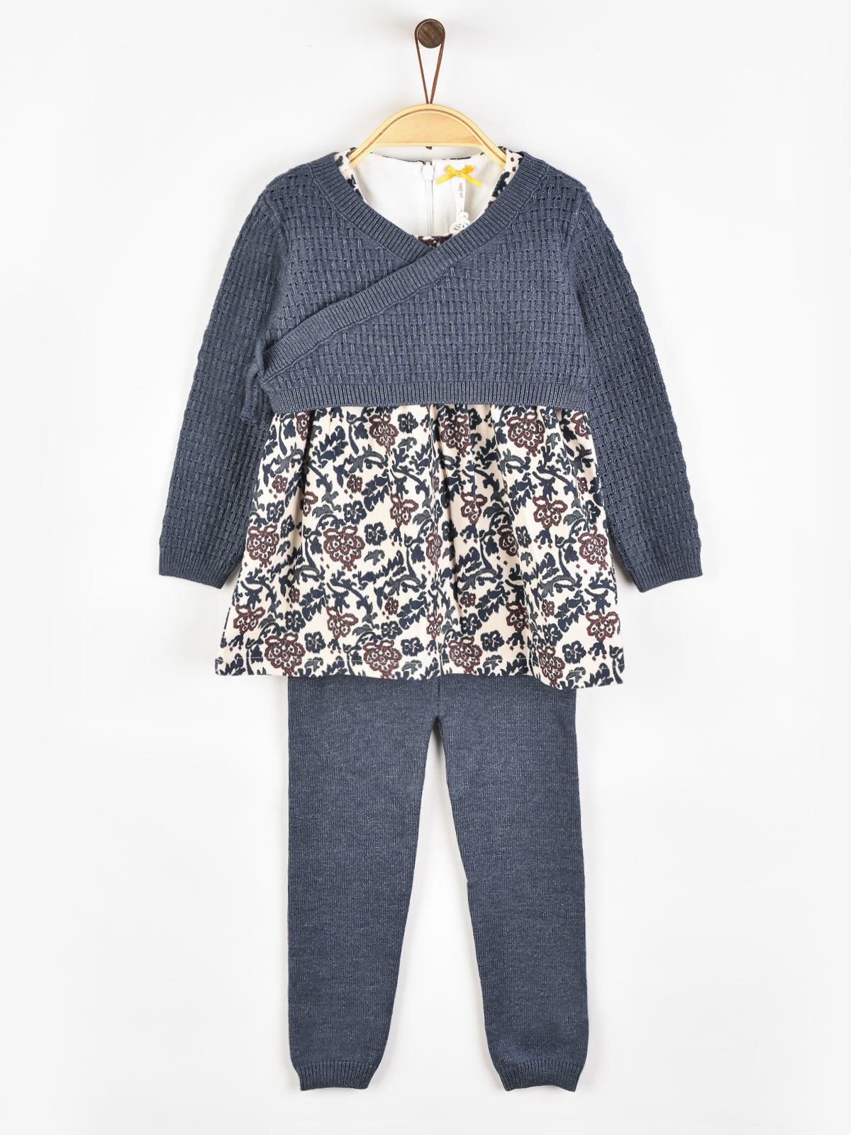 חליפת שני חלקים מבד סריג, בשילוב בד פרחוני.