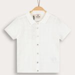 חולצת בנים בעיצוב קלאסי ומוקפד. הגזרה כוללת שרוולים קצרים, כפתורים לכל האורך וצווארון מסודר. עשויה בד סריג דק ונעים מתערובת כותנה איכותית, המעניק תחושת רכות לאורך היום.