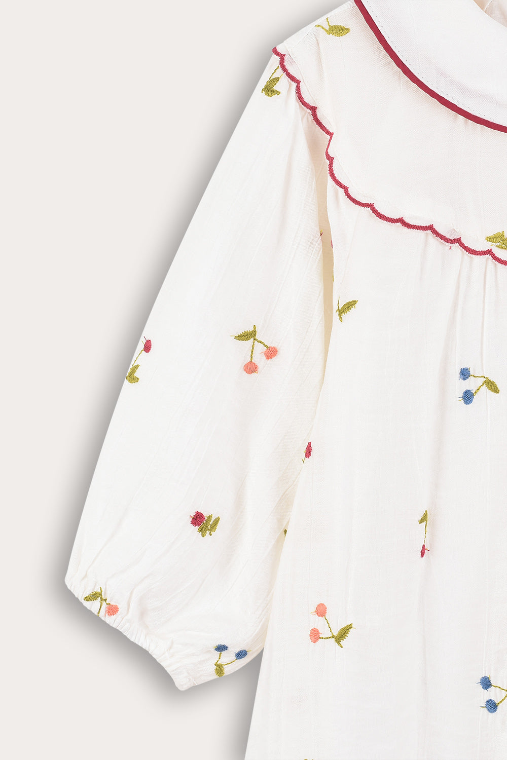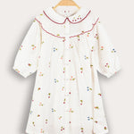 שמלת שבת חגיגית לבנות בעיצוב אלגנטי, בשילוב רקמת פרחים עדינה. עשויה מבד תערובת איכותי עם ויסקוזה שמעניק רכות ונוחות לאורך כל היום. מעוצבת בגזרה מחמיאה עם כפתורים לכל האורך, שרוולים נפוחים בסיומת כיווצים, צווארון בסיומת פס רקמה עדין, וחלק קדמי בסיומת גלים - להופעה קלאסית ומוקפדת.