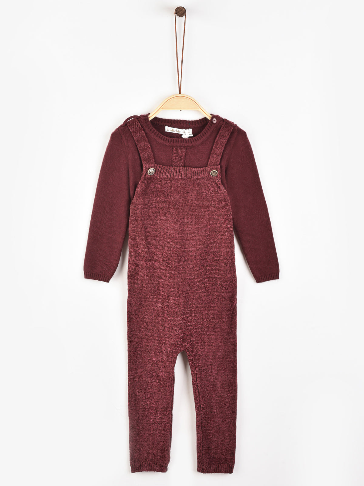 אוברול סריג קטיפתי עם בגד גוף - בורדו