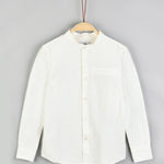 חולצה מכופתרת צווארון סיני - שמנת