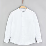 חולצה מכופתרת צווארון סיני - לבן