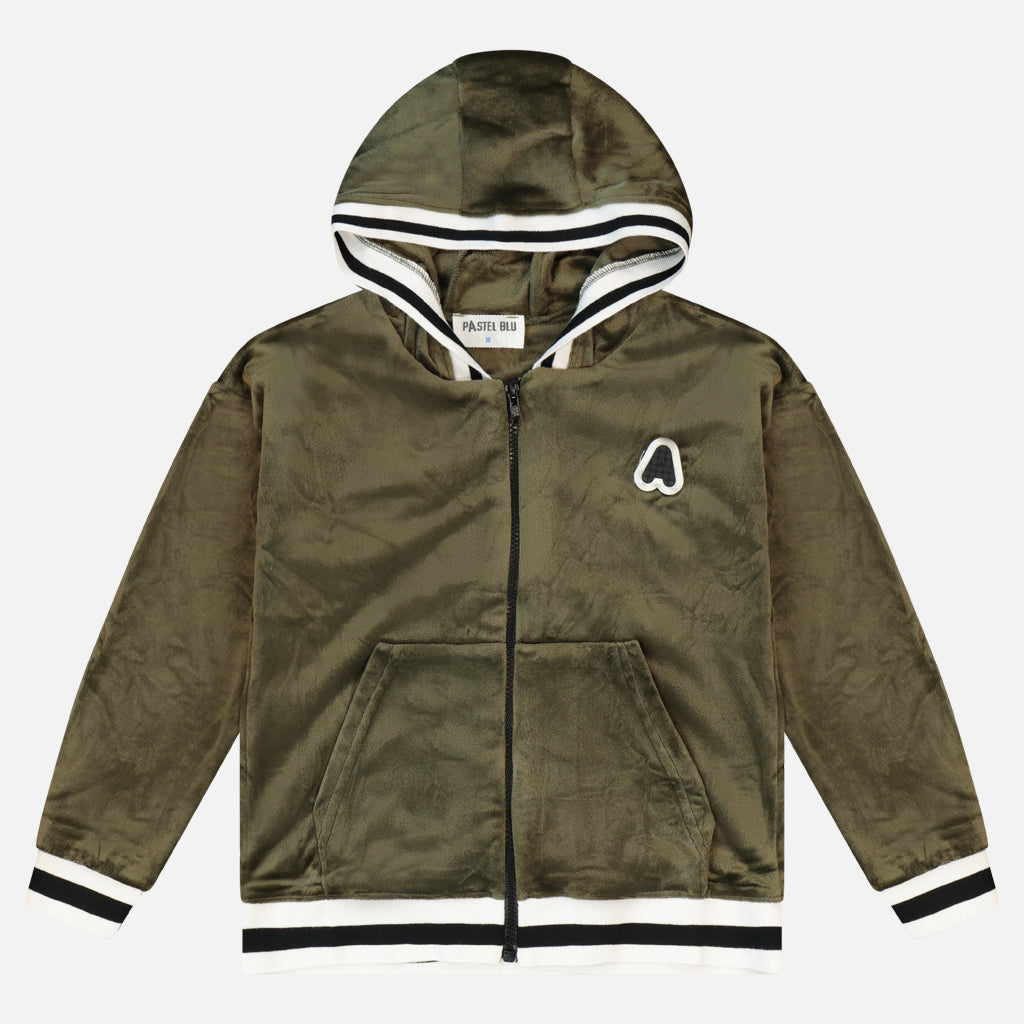 עליונית קפוצ'ון מבד קטיפה רך ונעים, עם סגירת רוכסן וסיומת ריב.