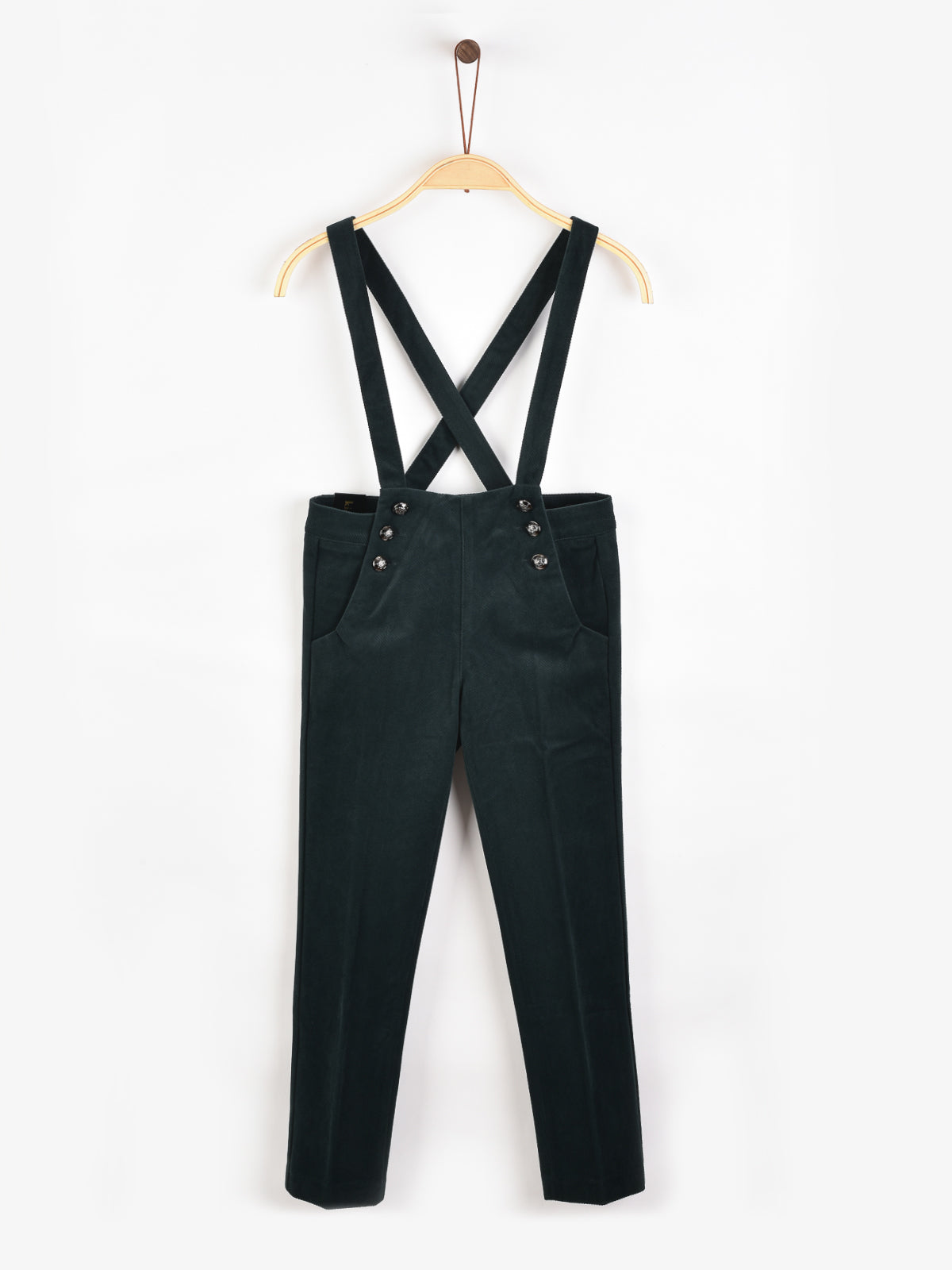 מכנסי קטיפה אלגנטיים עם שלייקס ושילוב כפתורים.