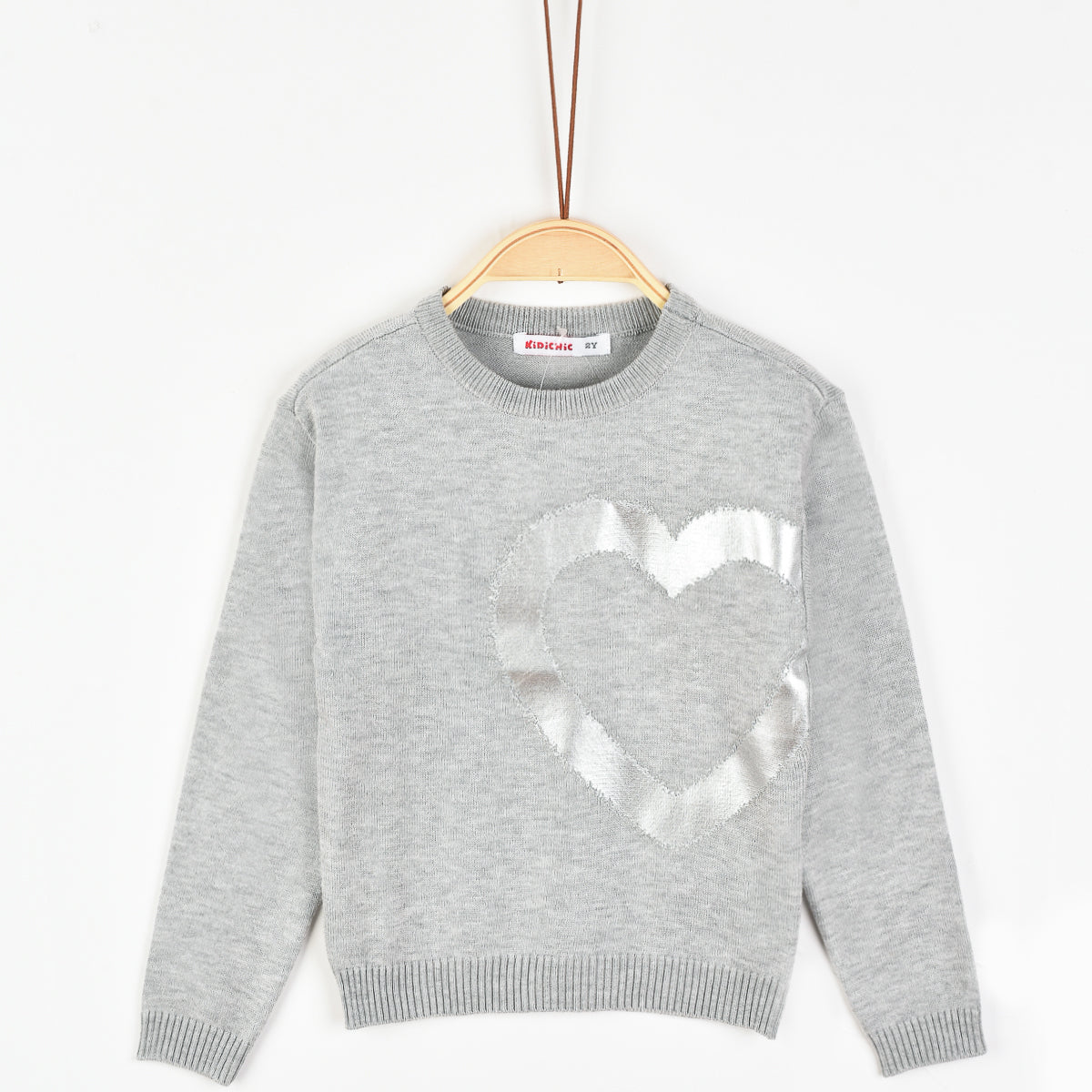 חולצת סריג עם לב - אפור