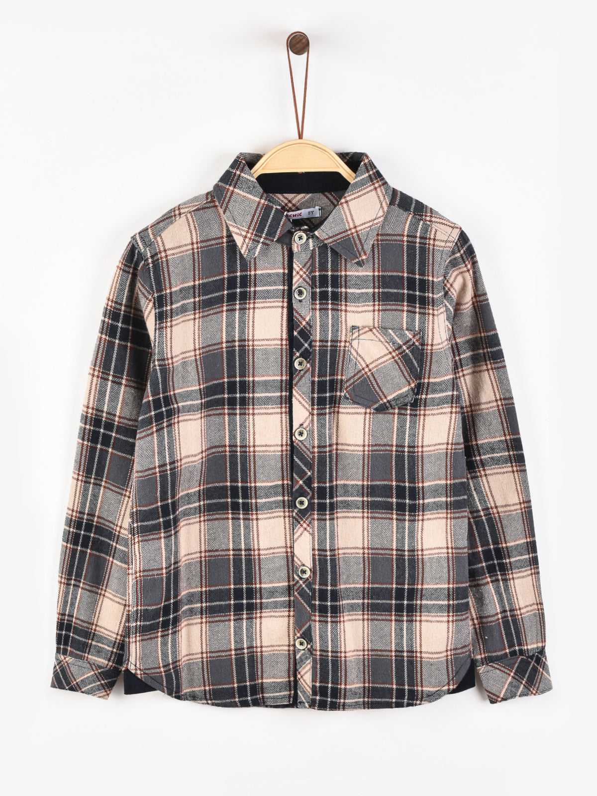 חולצת משבצות מכופתרת - כחול