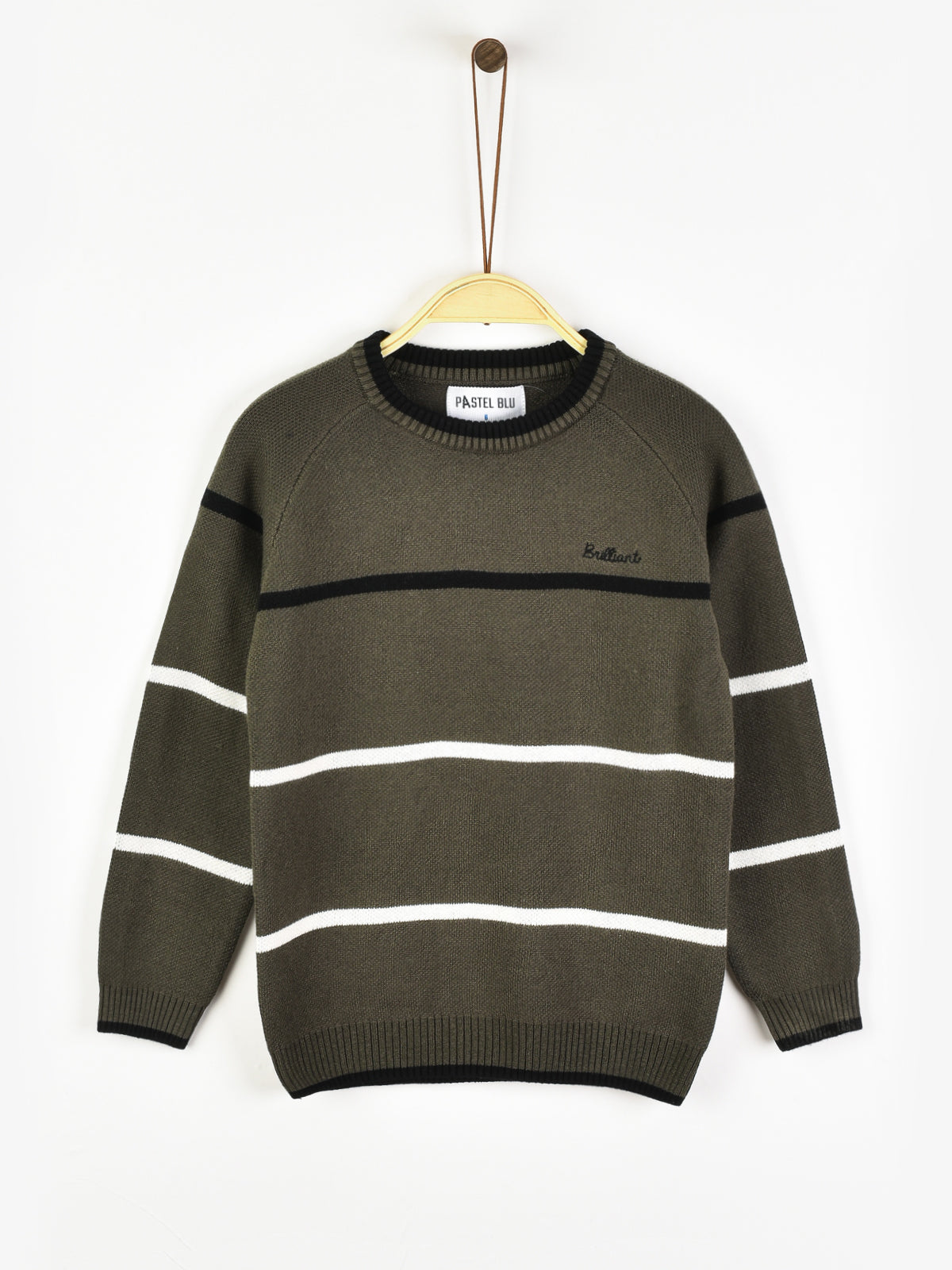 סוודר סריג פסים - זית