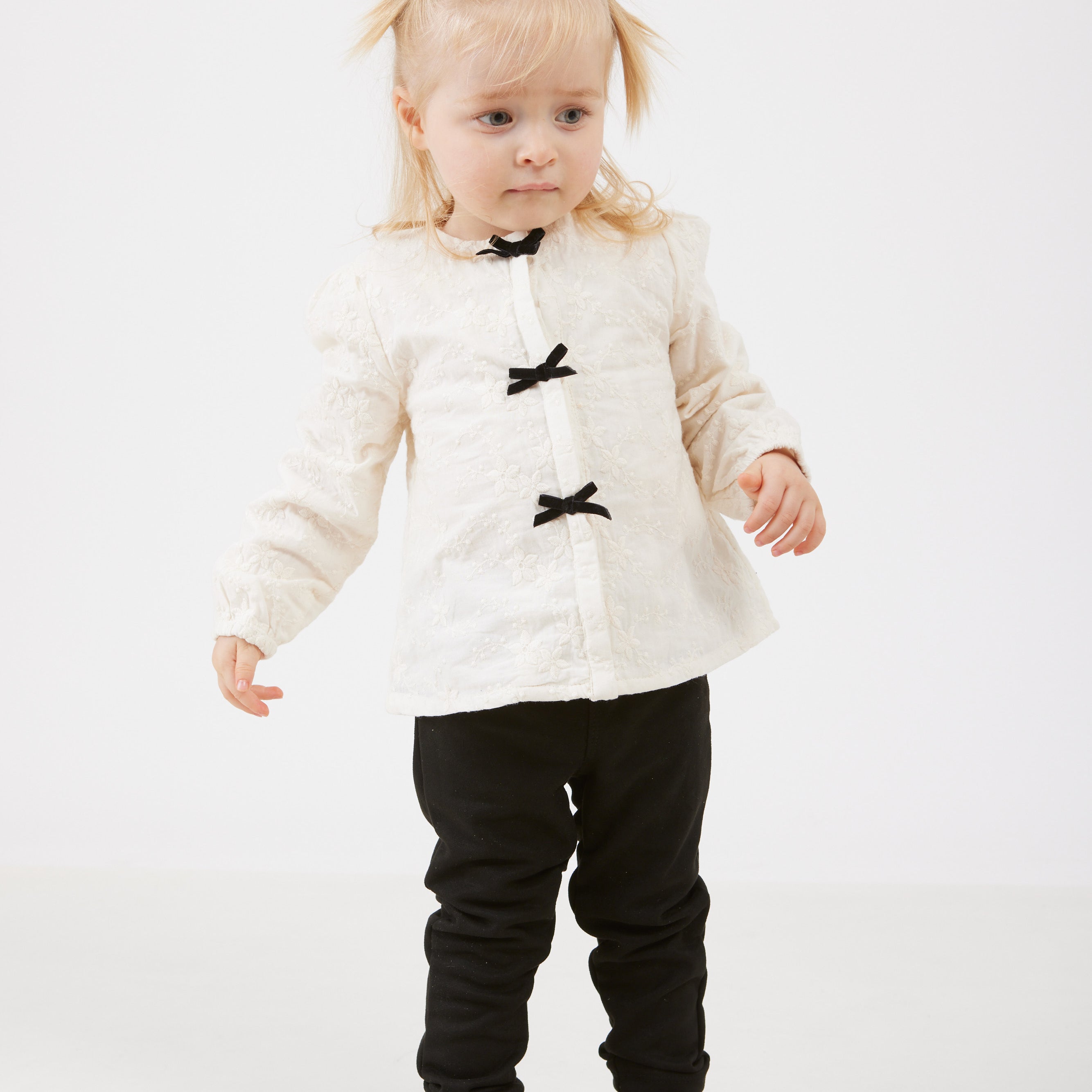 חולצת רקמה עם פפיונים קטיפה - שחור