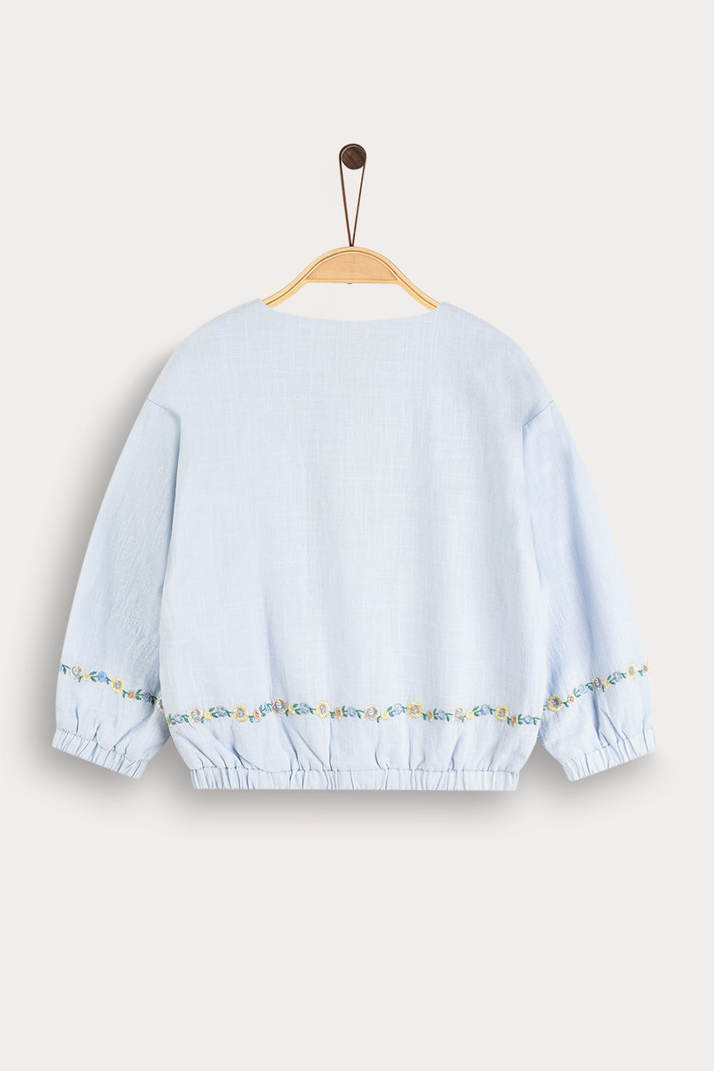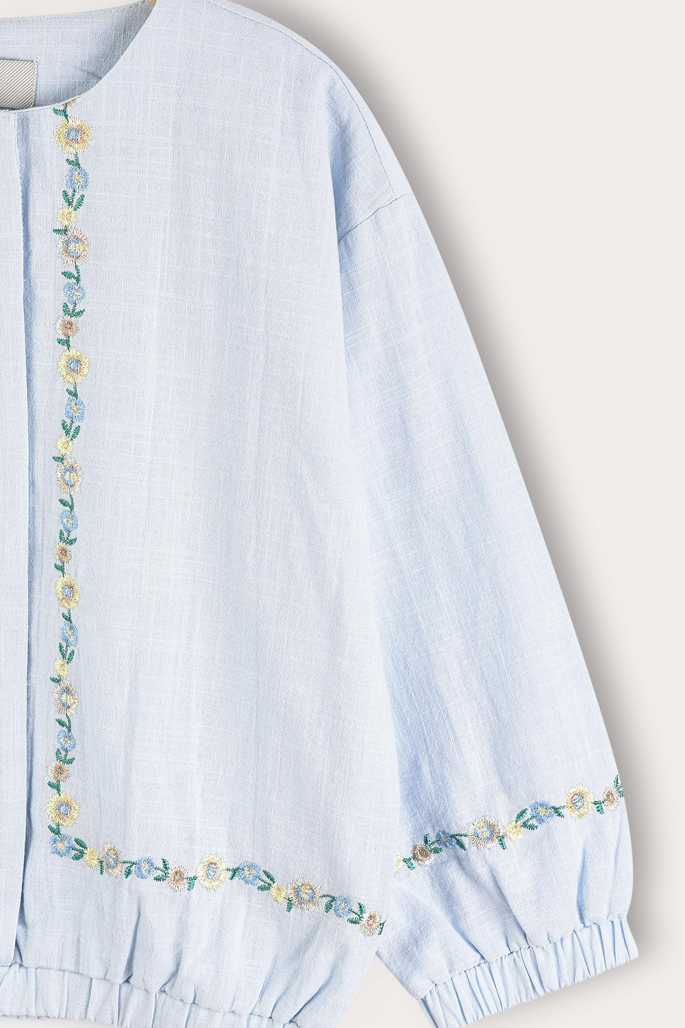 חולצה חגיגית לבנות בעיצוב אלגנטי ונעים - במיוחד לשבתות ולאירועים משפחתיים. הגזרה כוללת שרוולים נפוחים וסיומת כיווצים - להופעה נוחה ומחמיאה. החלק החיצוני עשוי כותנה איכותית עם רקמת פרחים עדינה המעניקה מראה עשיר ומעודן. החלק הפנימי בטנה רכה, שמשלימה מראה מסודר ומוקפד לאורך כל היום.