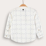 חולצה חגיגית לבנים בעיצוב קלאסי ומוקפד, עשויה מבד כותנה נעים ונושם - לנוחות מירבית לאורך היום. הגזרה כולתת שרוולים ארוכים, כפתורים לכל האורך ופתח צוואר עגול למראה מסודר ונעים. הדפס משבצות אלגנטי משלים הופעה נאה ואלגנטית, אידיאלית לשבתות, חגים ואירועים משפחתיים.