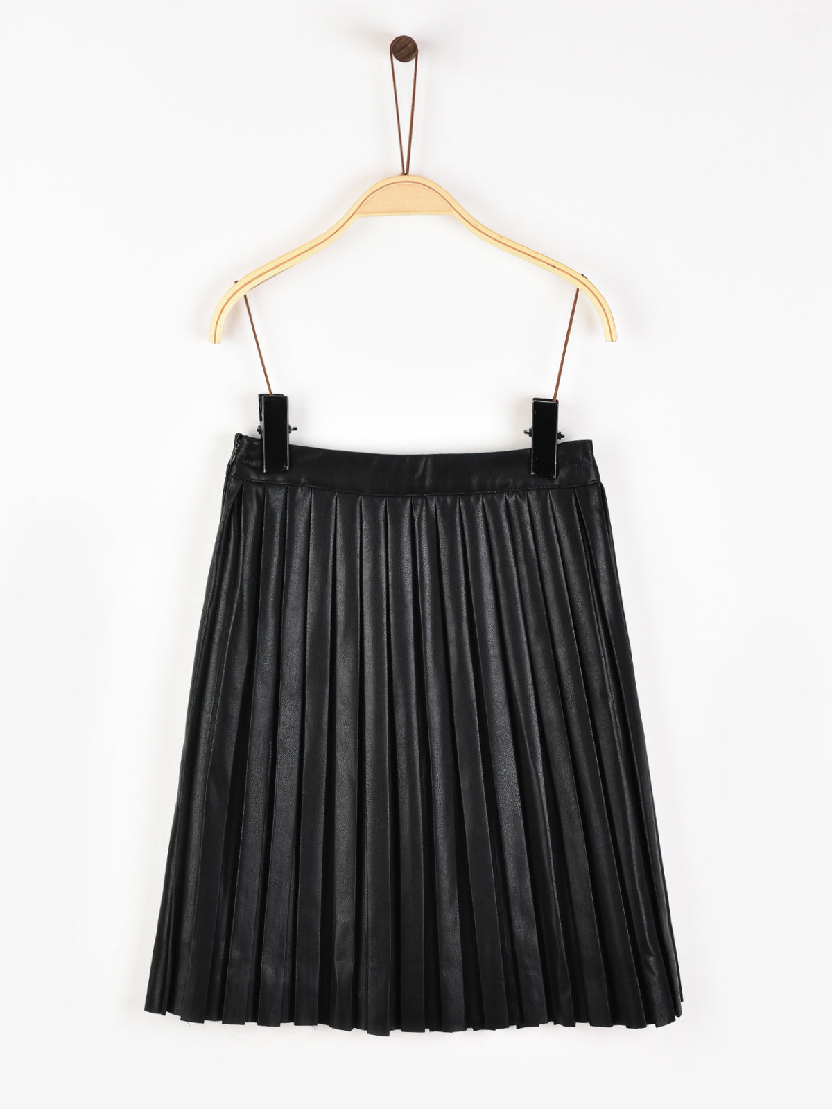 חצאית קפלים דמוי עור - שחור