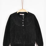 קרדיגן מבד קטיפה, עם שני כיסים וסגירה של שלושה תיקתקים.