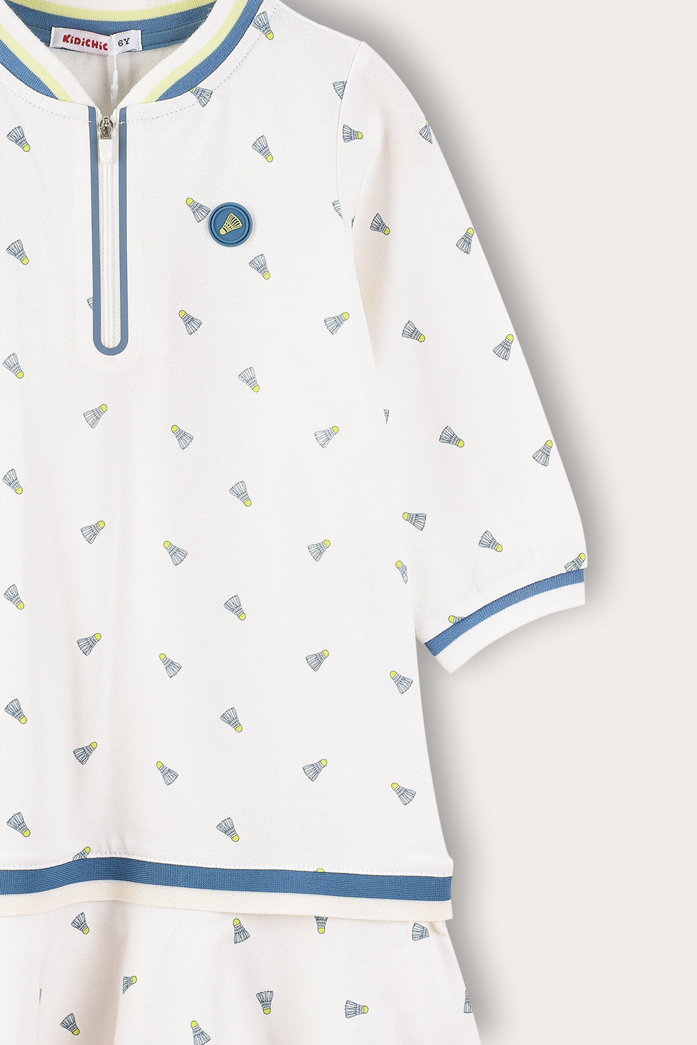 שמלת פולו לבנות בעיצוב ספורטיבי ונוח, עשויה מבד תערובת כותנה איכותי ונושם. הגזרה כוללת מבנה קומות, שרוולים באורך 3/4, רוכסן קדמי וסיומת ריב - להופעה מסודרת ומוקפדת. בחירה פרקטית ומסוגננת שמשלבת מראה מסודר ונקי עם חופש תנועה מקסימלי.
