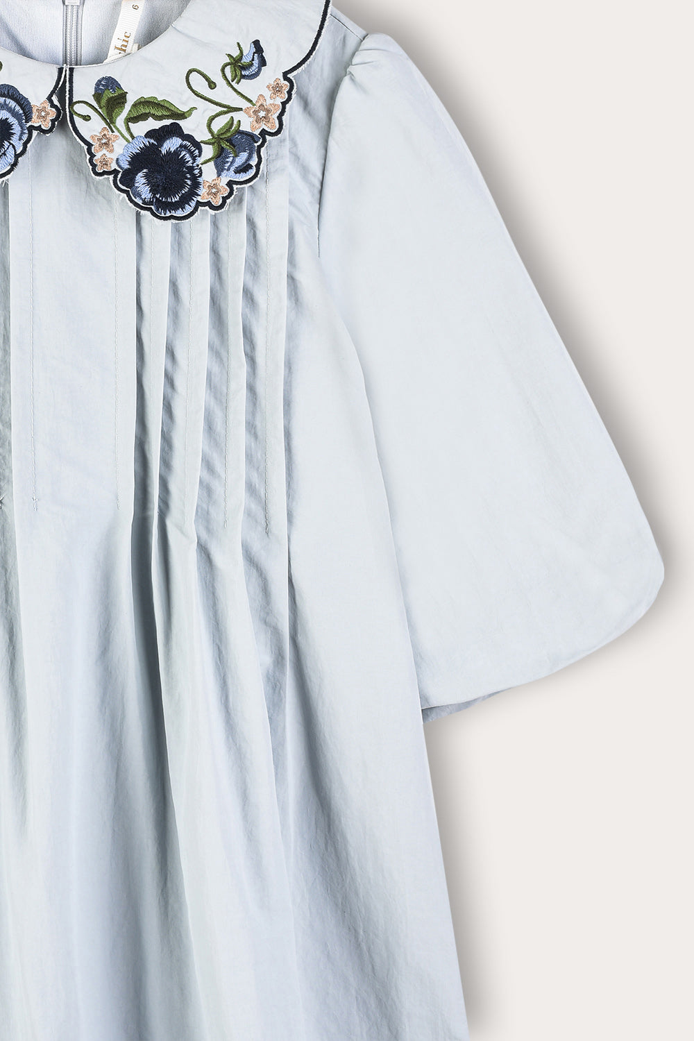 שמלת קפלים עם צווארון מעוצב - תכלת