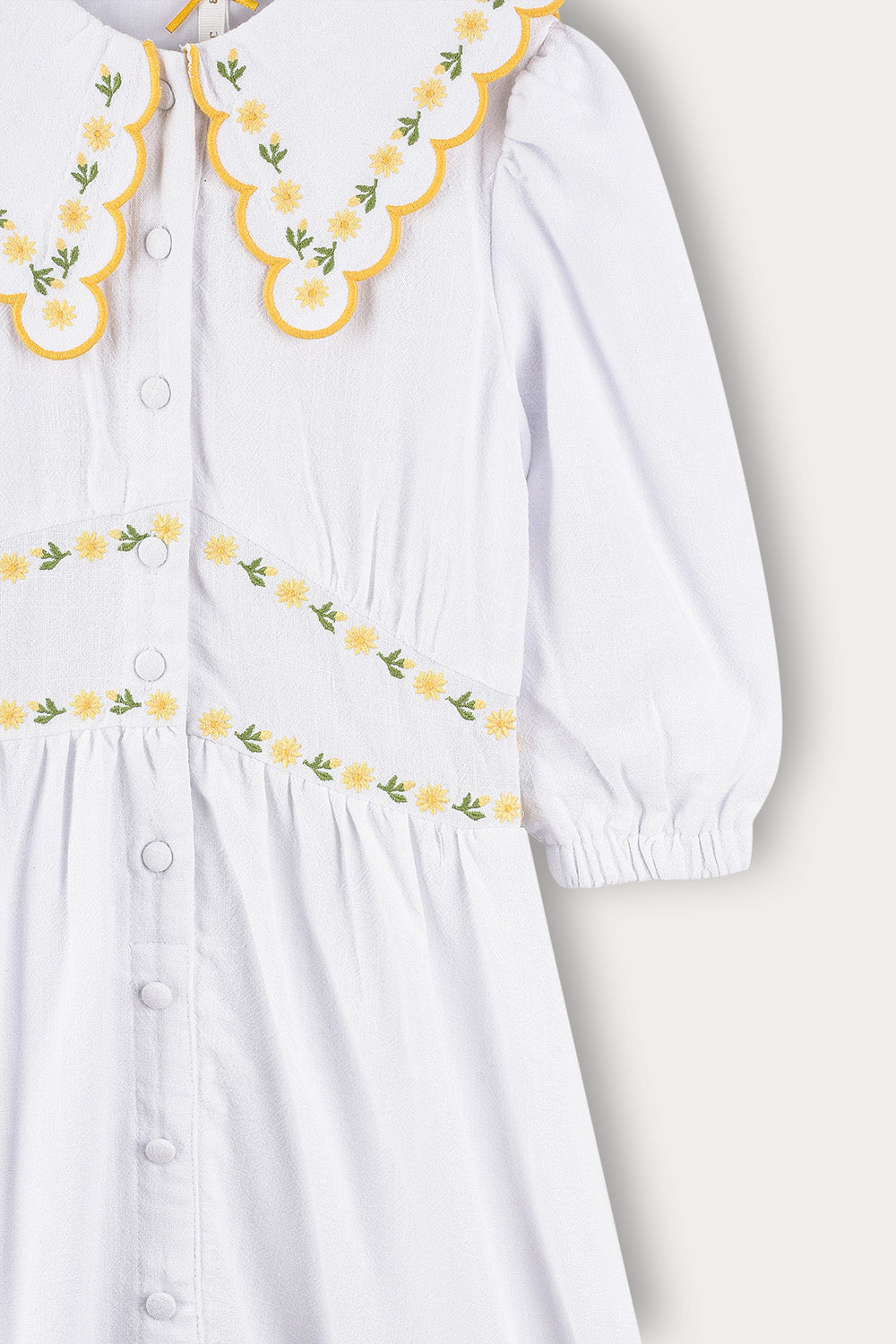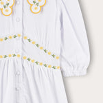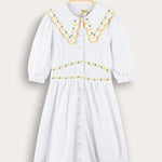 שמלה חגיגית לבנות, עשויה מבד תערובת פשתן איכותי ונעים. הגזרה כוללת כפתורים לכל האורך, צווארון רחב ייחודי, שרוולים נפוחים, חגורת מותניים מעוצבת וכיווצים ליצירת נפח וחופש תנועה. רקמת פרחים עדינה - משלימה הופעה חיננית ומוקפדת, המתאימה לשבתות, חגים ואירועים משפחתיים.הרכב בד:70% פשתן30% כותנה
