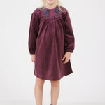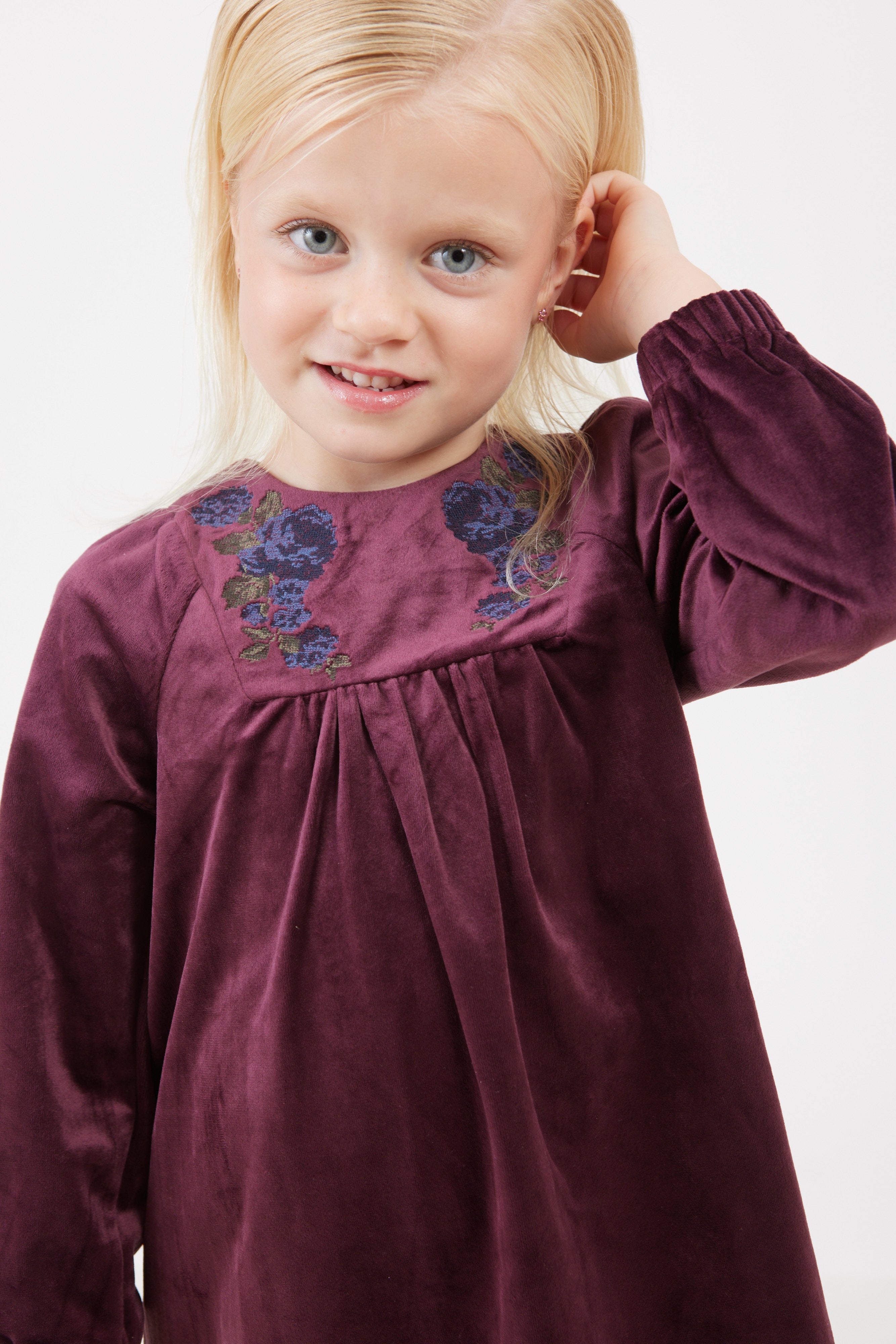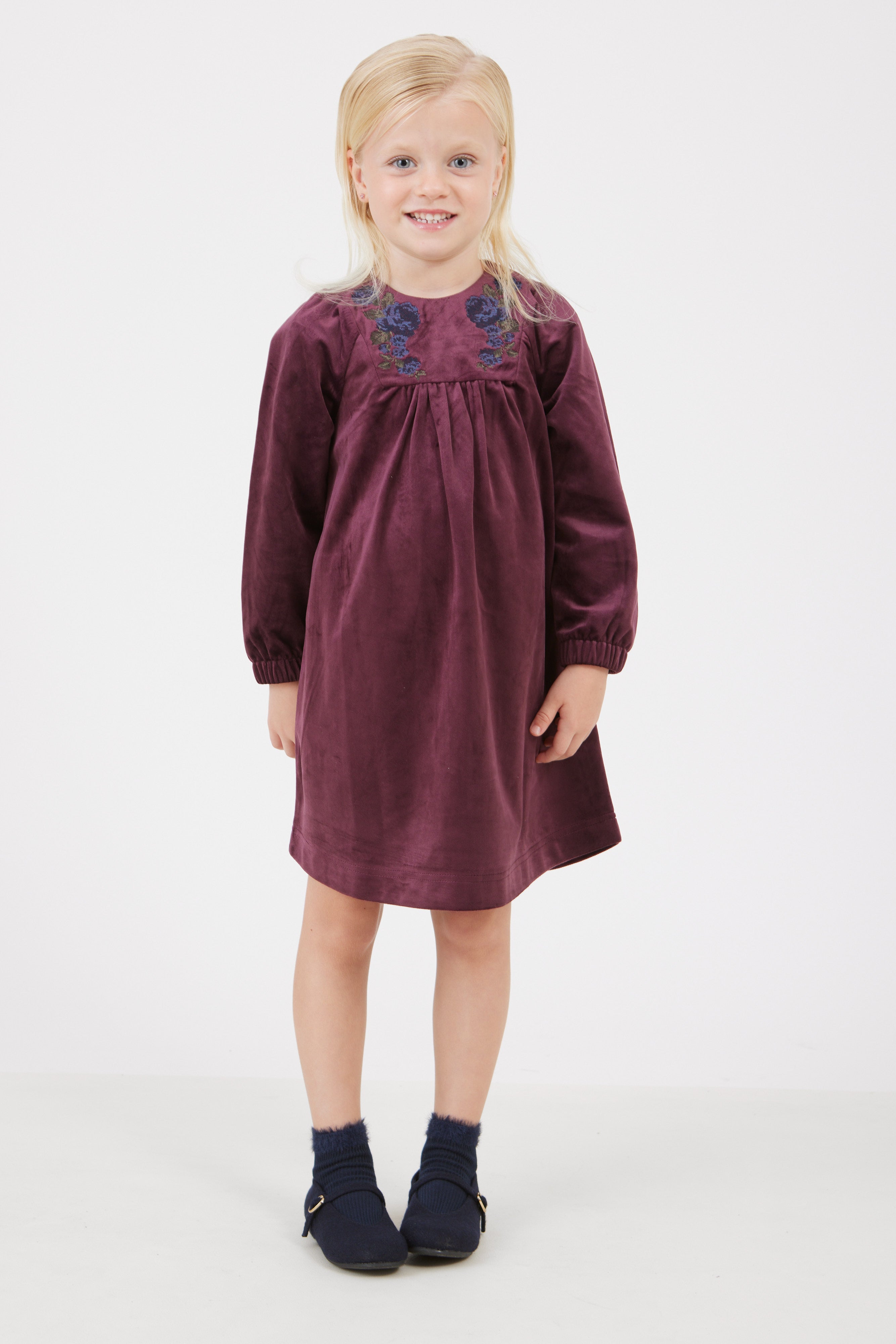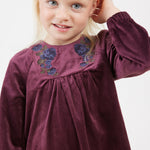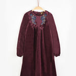 שמלת קטיפה עם רקמת פרחים - בורדו
