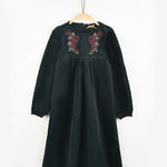 שמלת קטיפה עם רקמת פרחים - ירוק