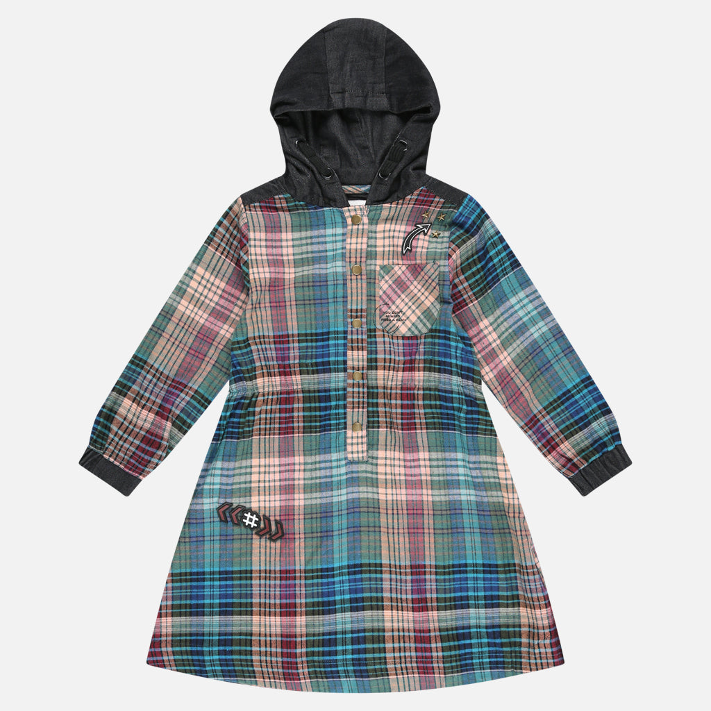 שמלת משבצות עם קפוצ'ון - צבעוני
