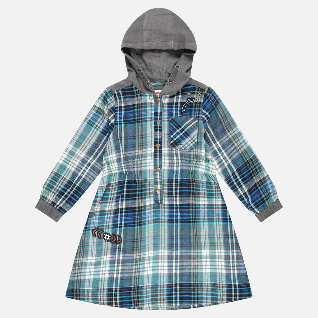 שמלת משבצות עם קפוצ'ון - מנטה