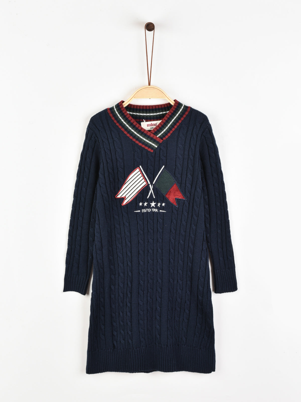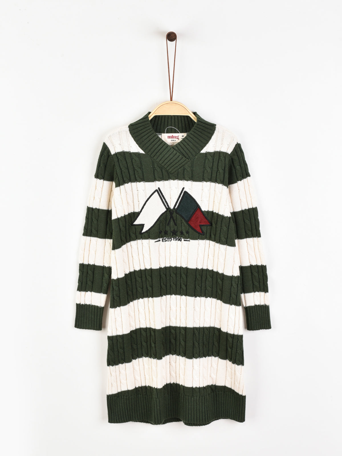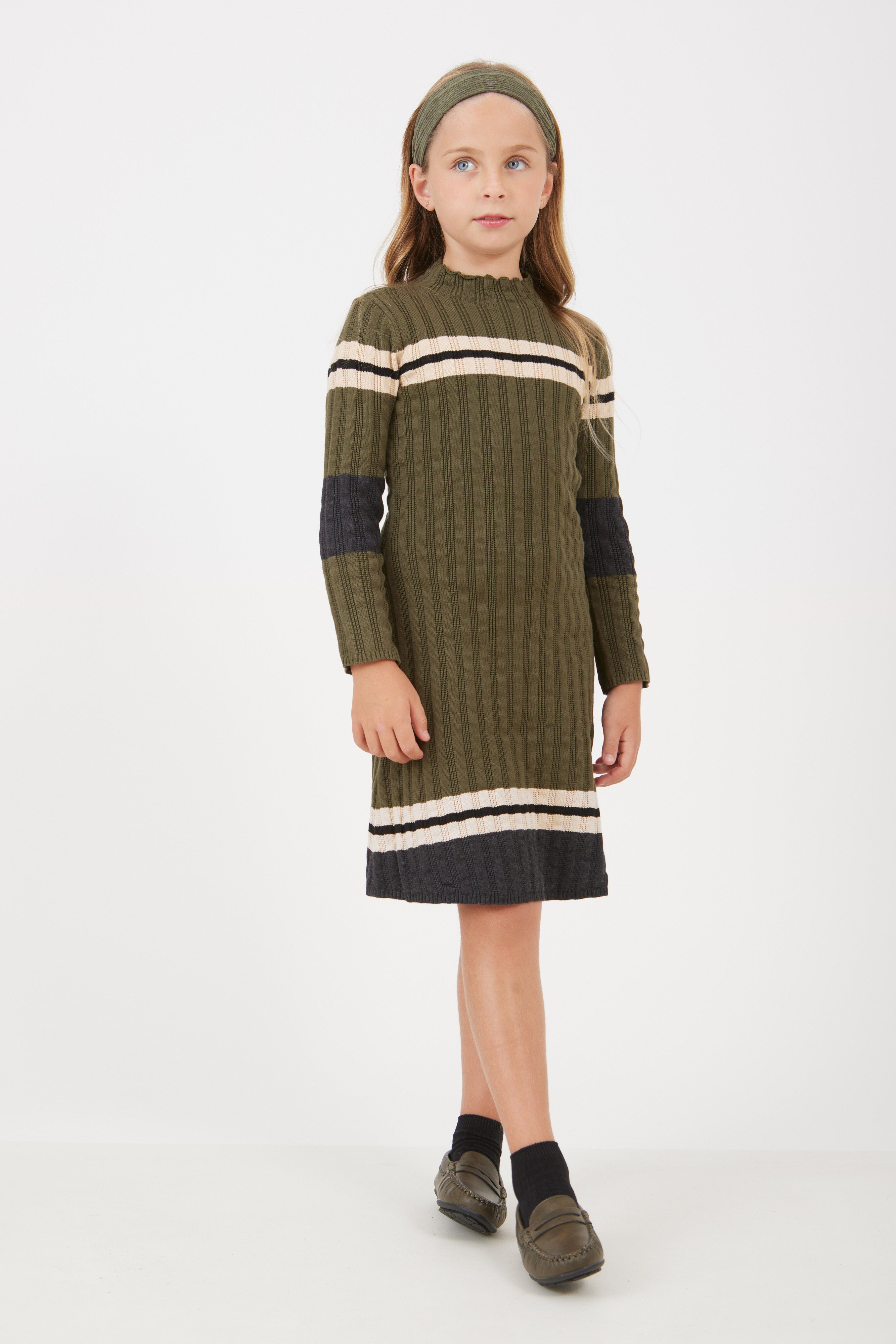 שמלת קטיפה בשילוב וסט סריג - ירוק