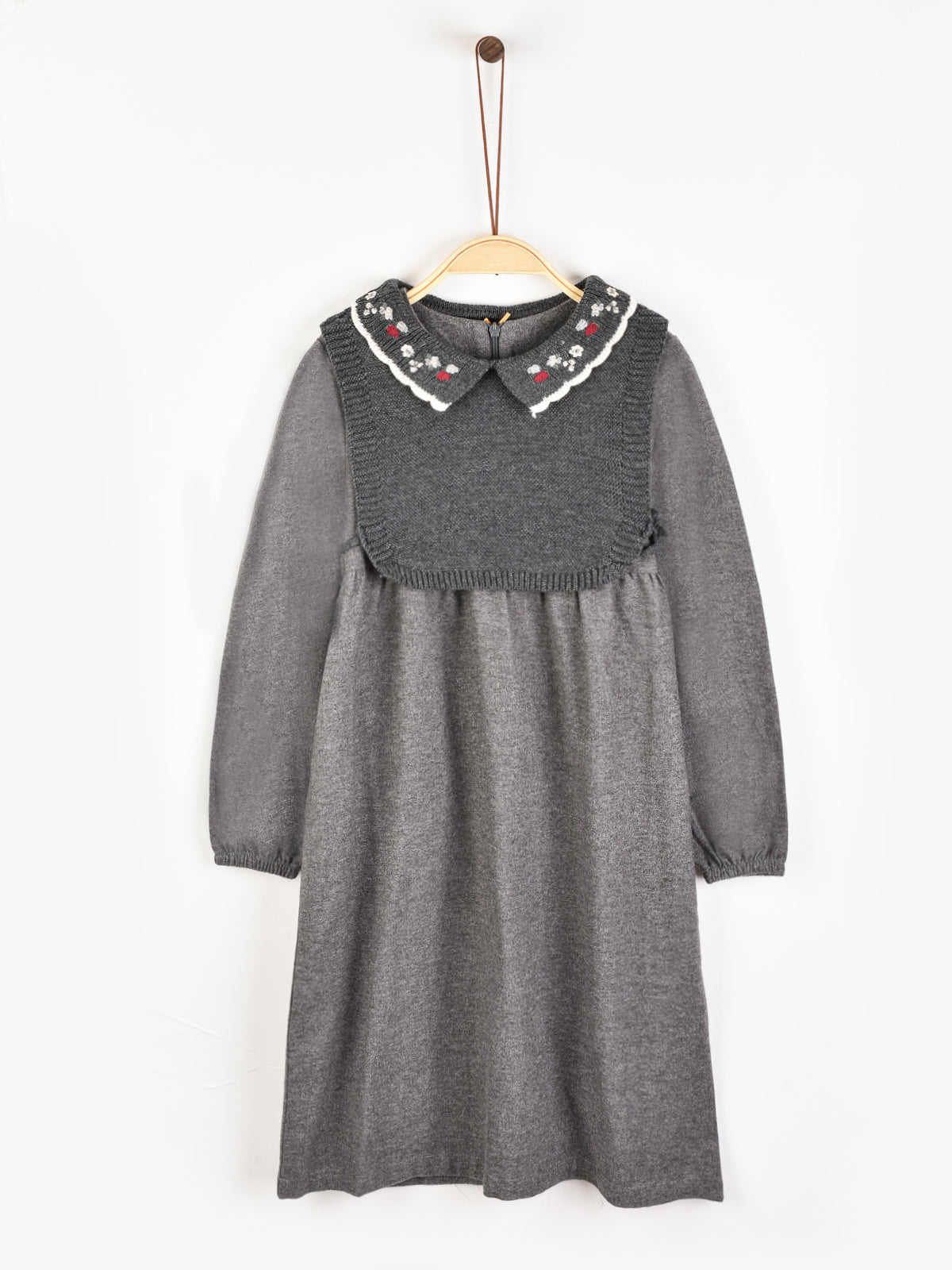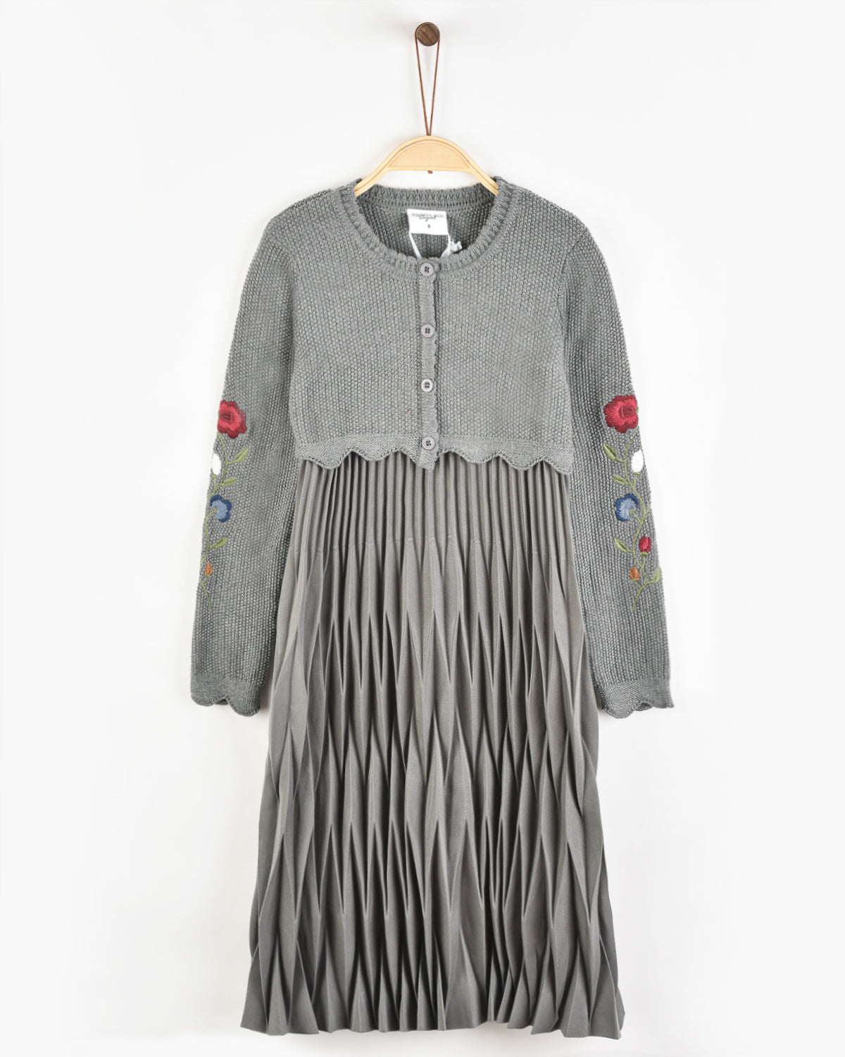 שמלת קפלים בשילוב קרדיגן סריג - אפור