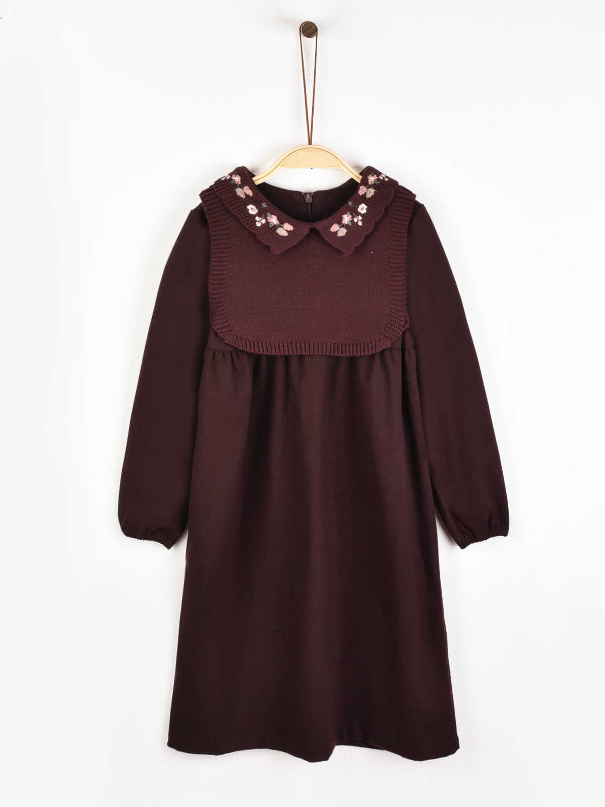 שמלת קטיפה בשילוב וסט סריג - בורדו