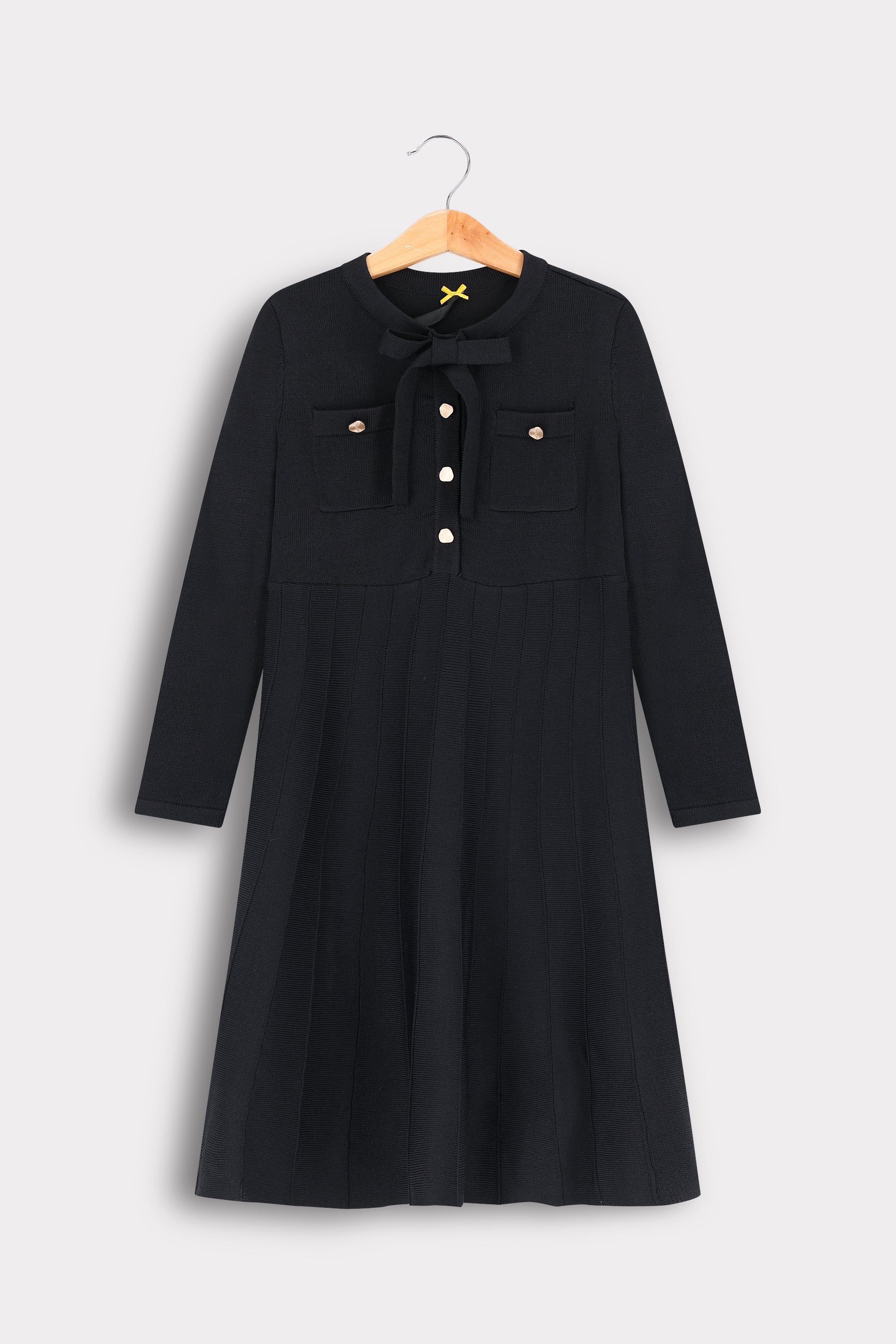 שמלת סריג עם כיסים - שחור