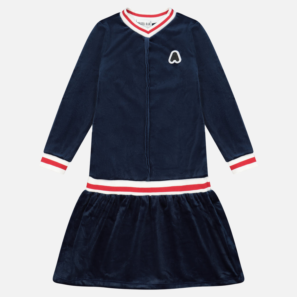 שמלת קטיפה בשילוב ריב - נייבי
