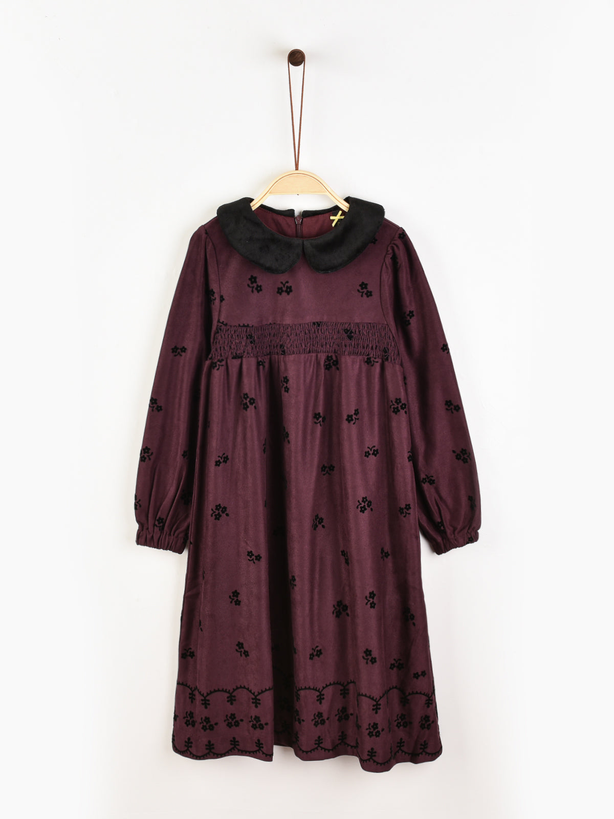 שמלה פרחונית עם צווארון קטיפה - בורדו