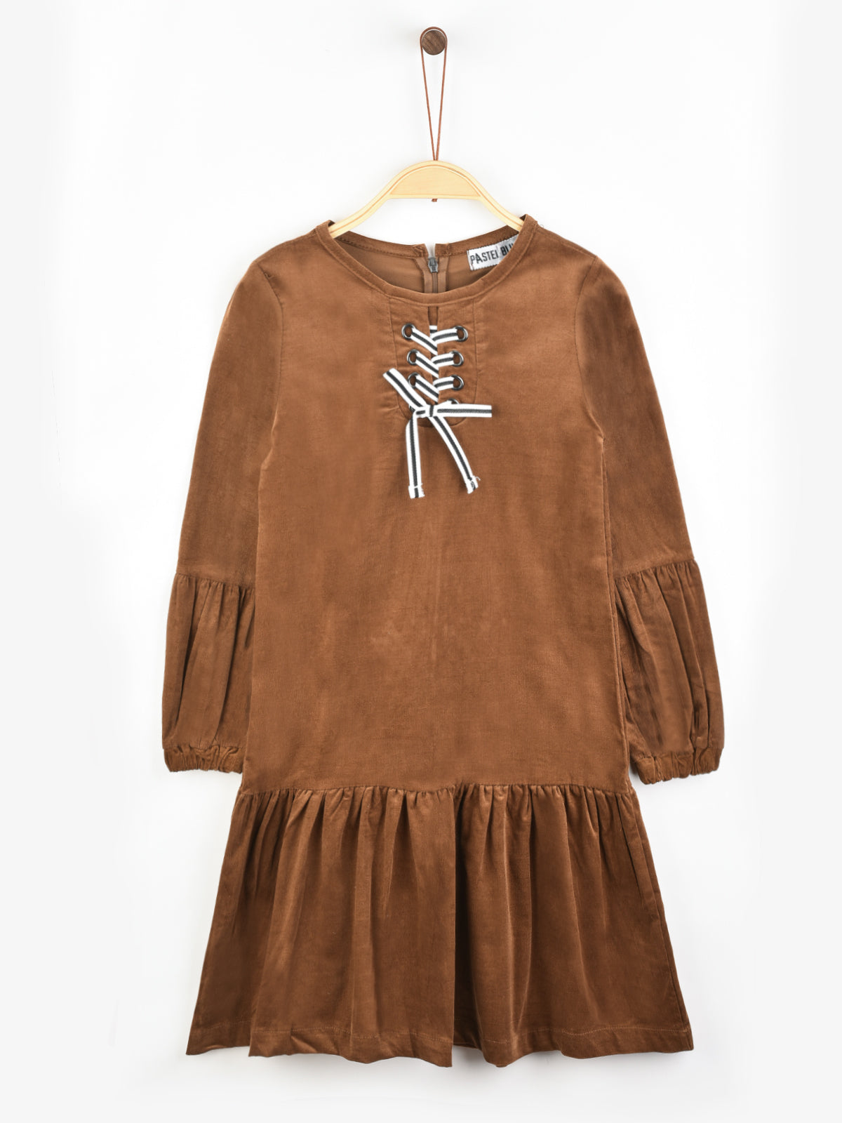 שמלת קורדרוי עם שרוכי קשירה - קאמל