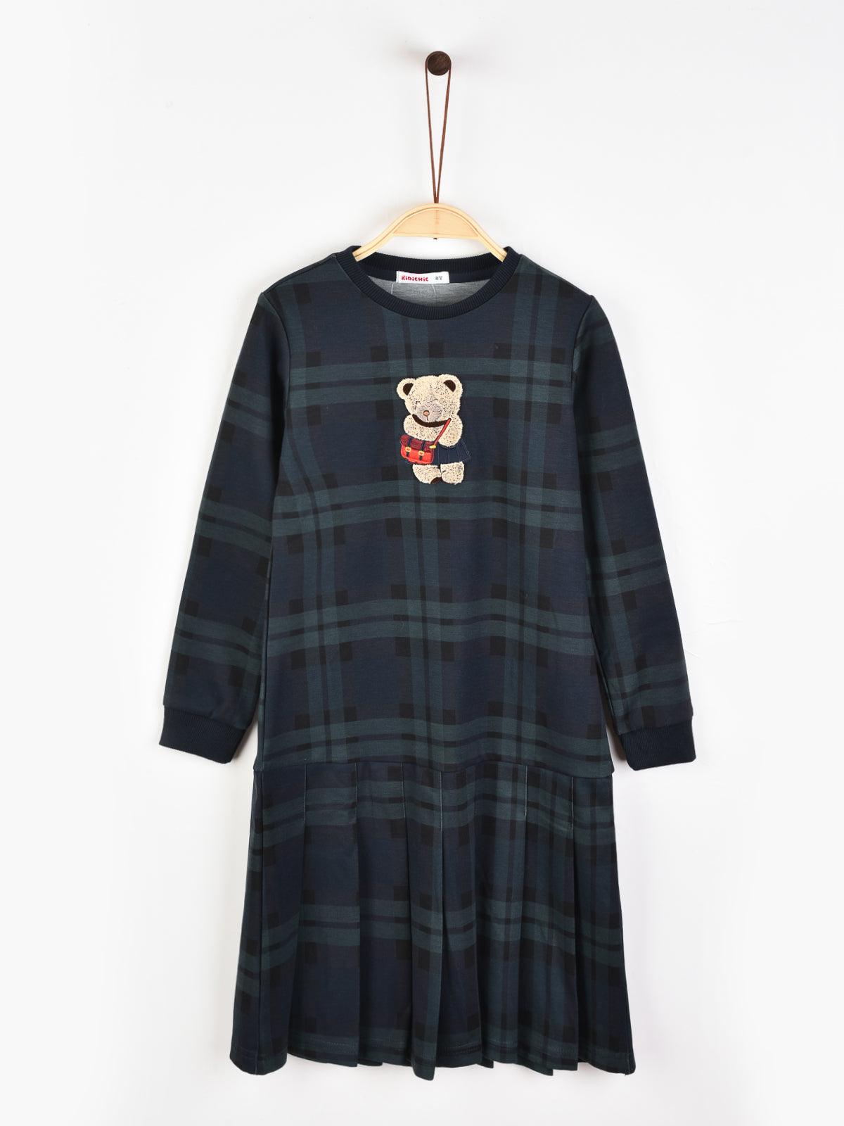 שמלת משבצות עם דובי - ירוק