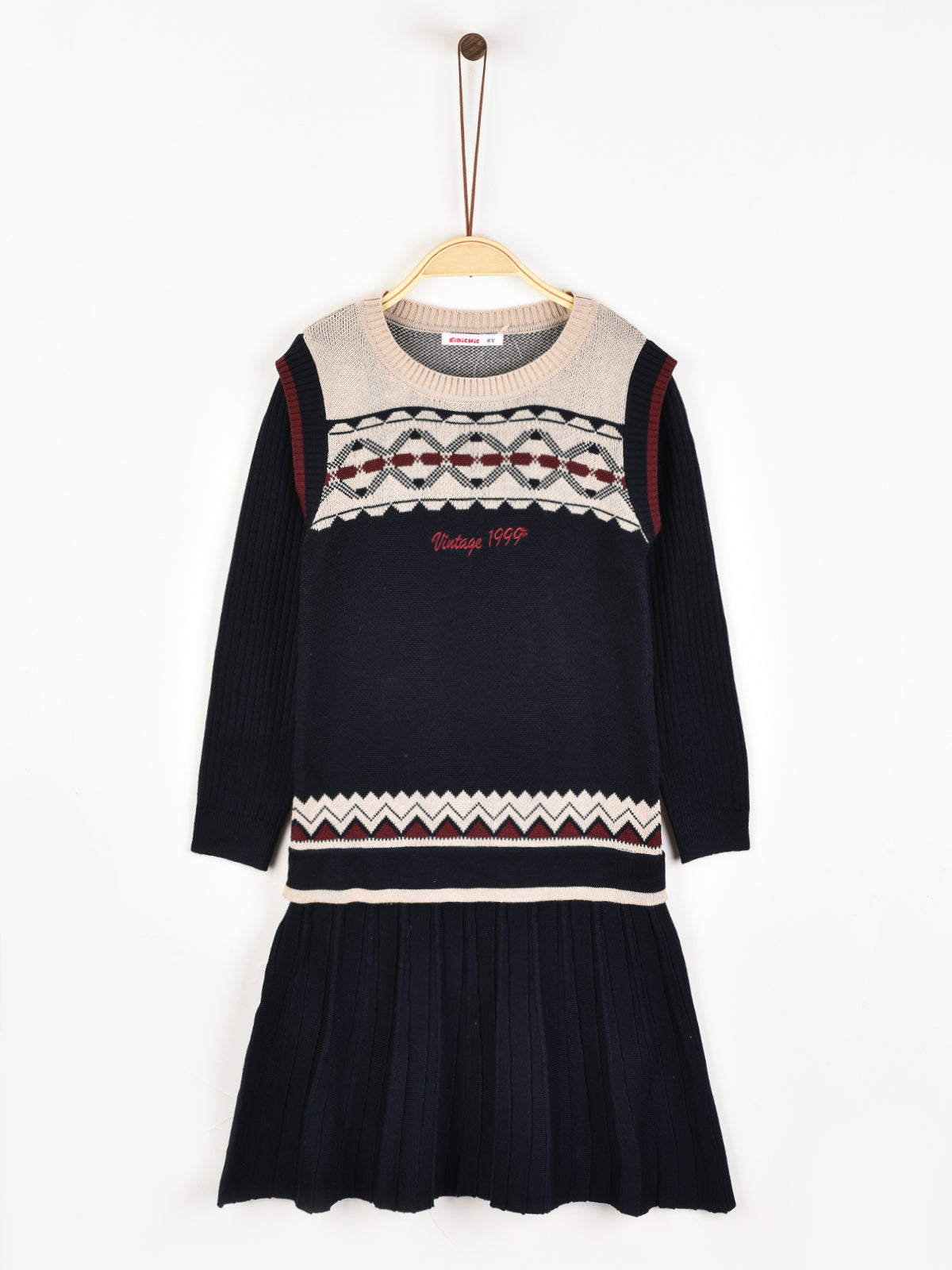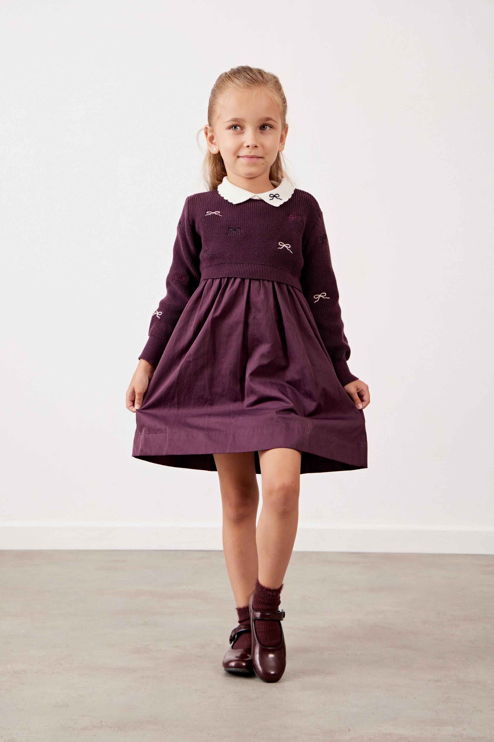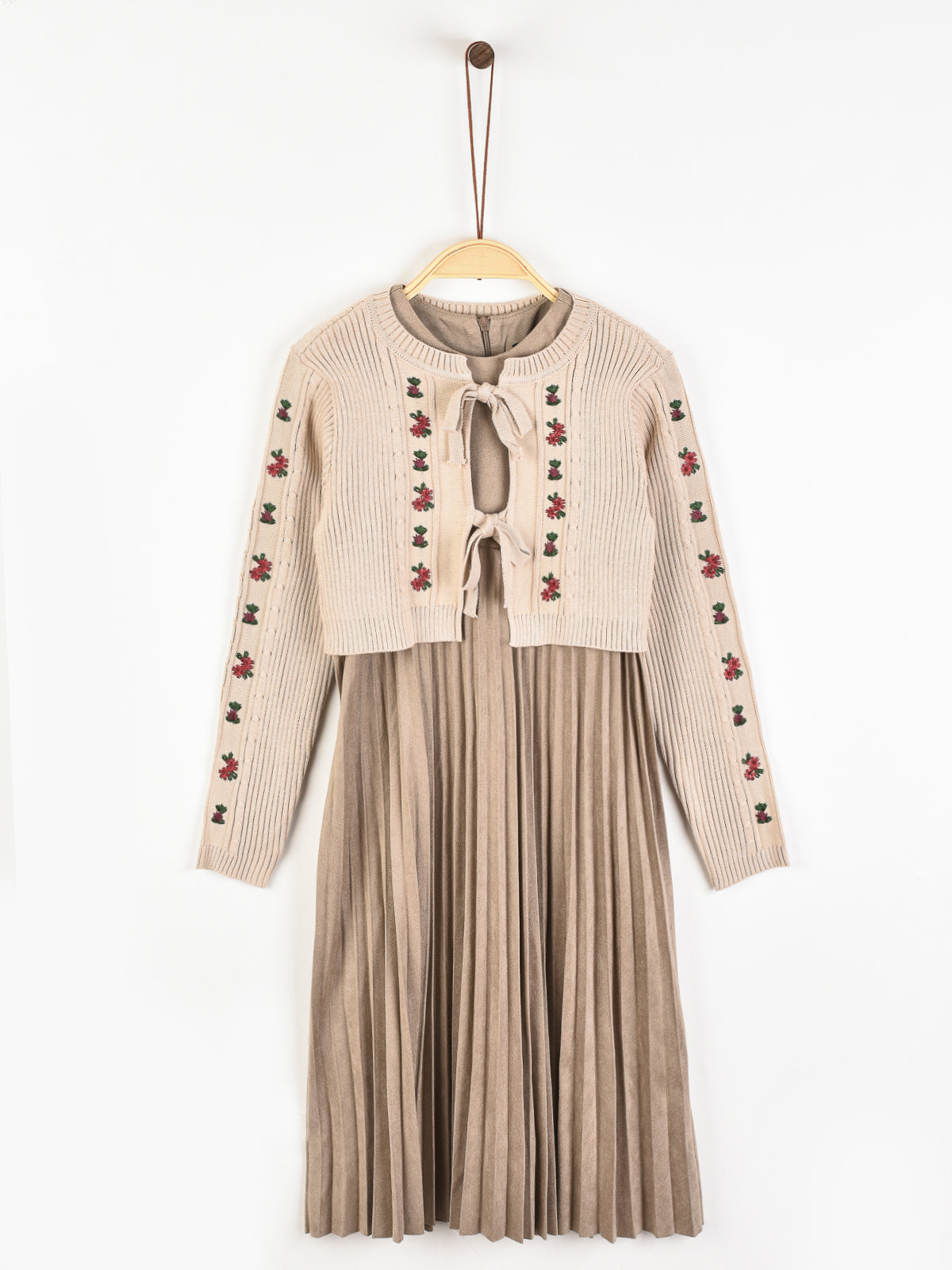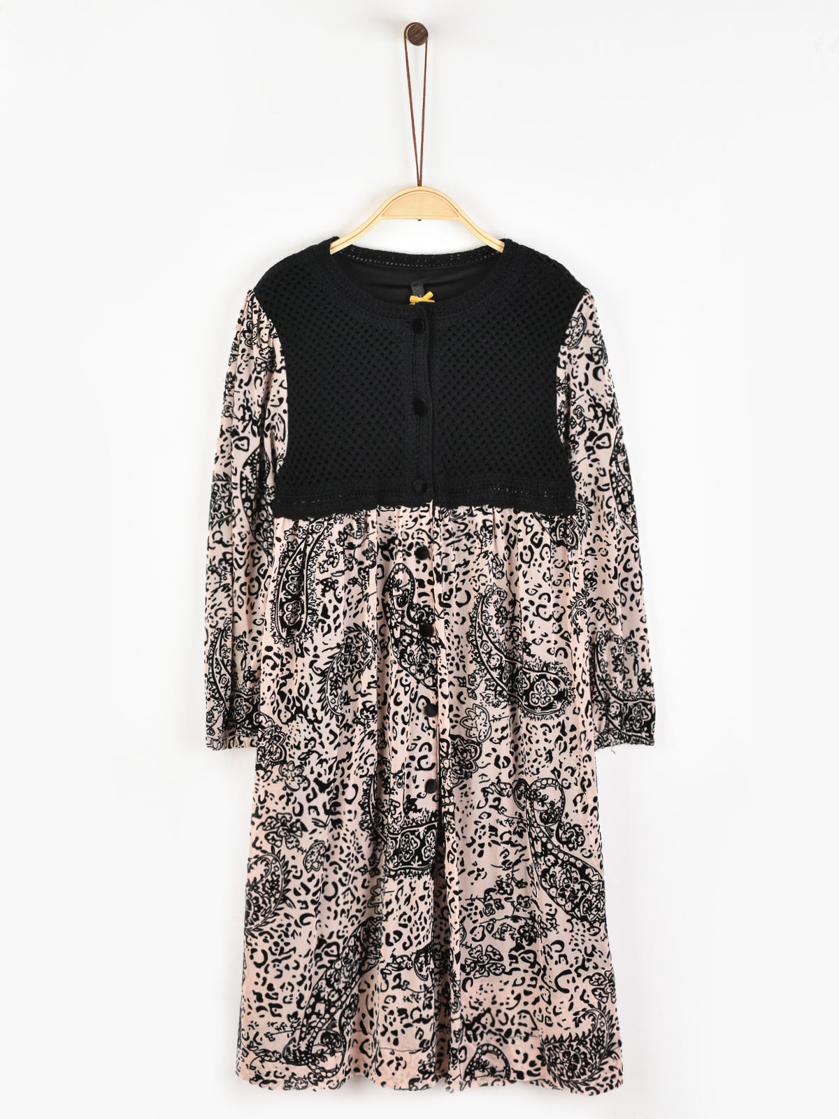 שמלת הדפס קטיפה בשילוב סריג - אבן