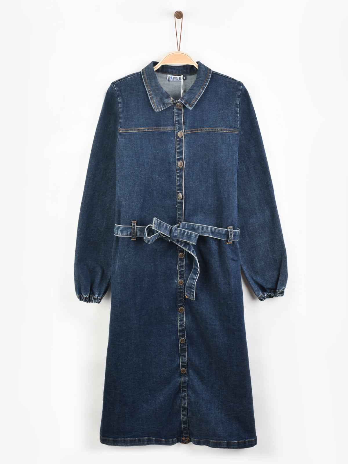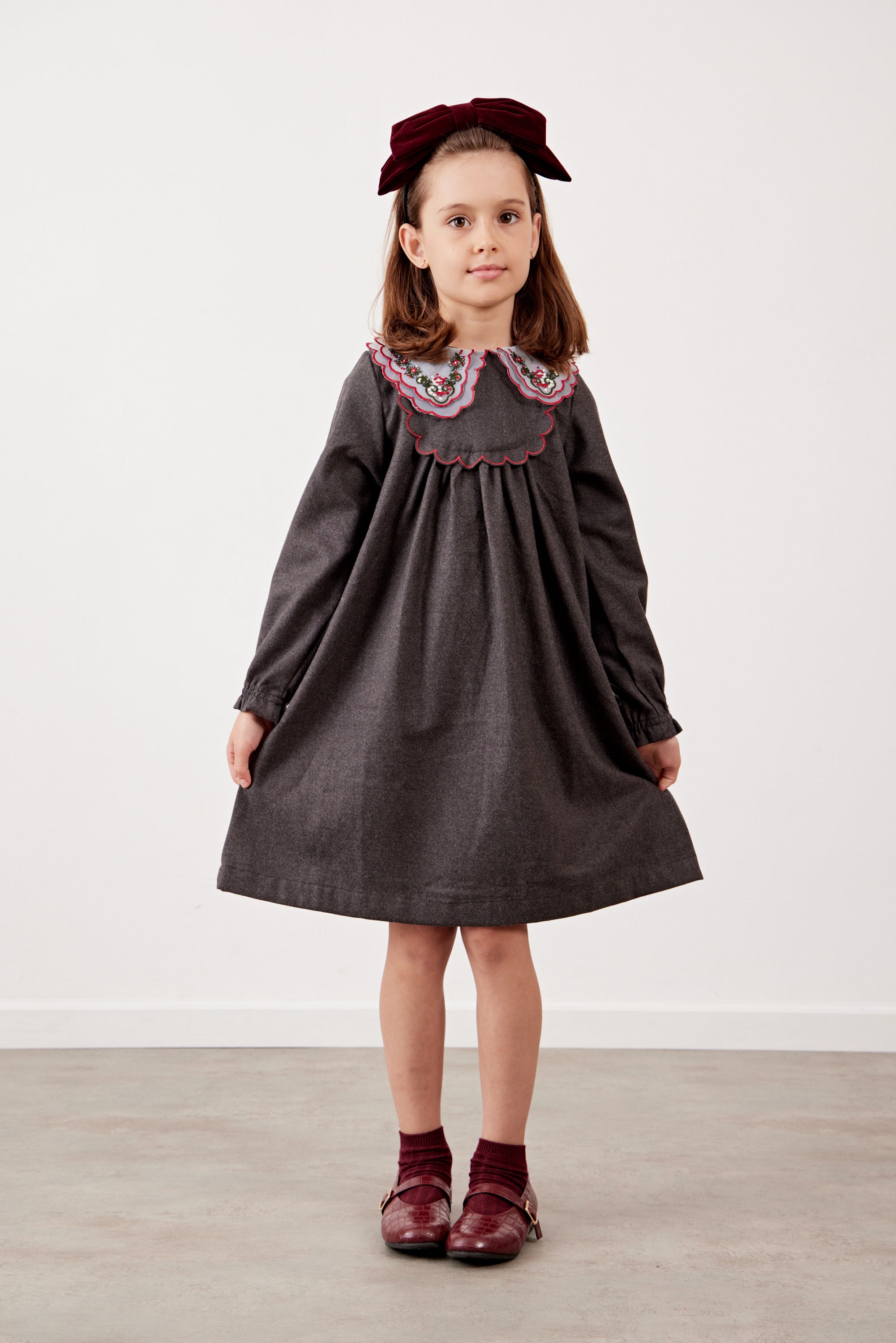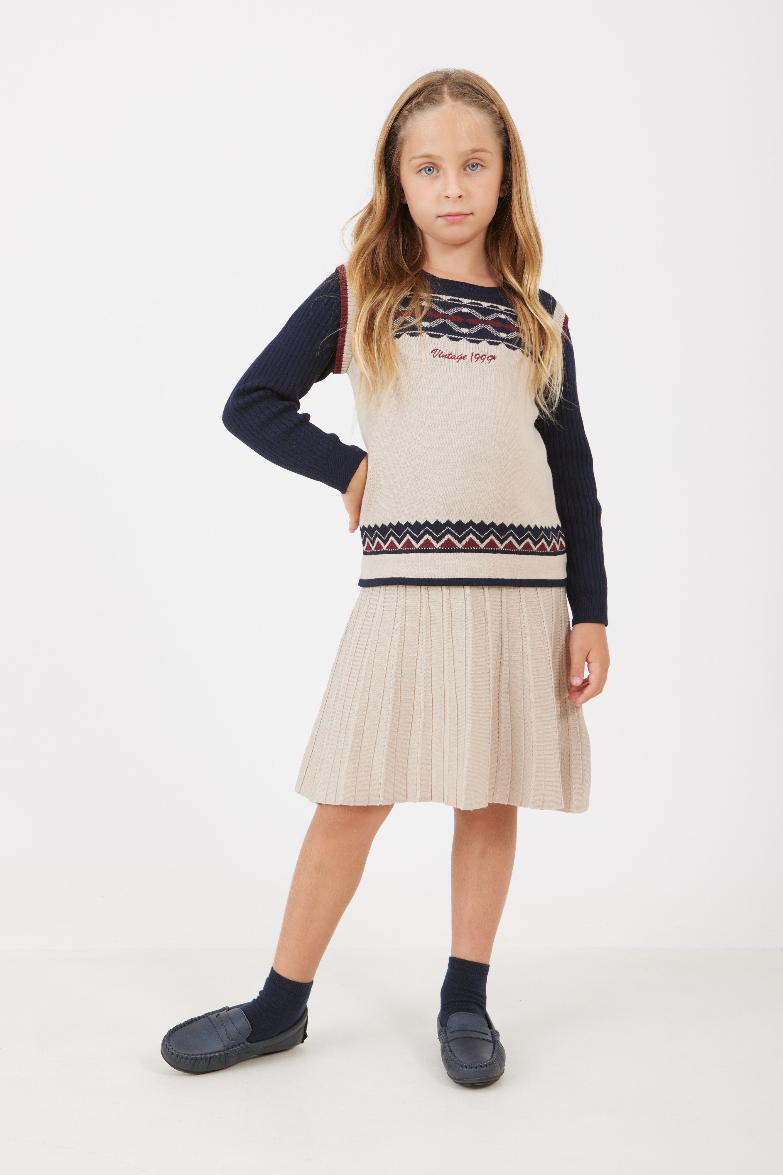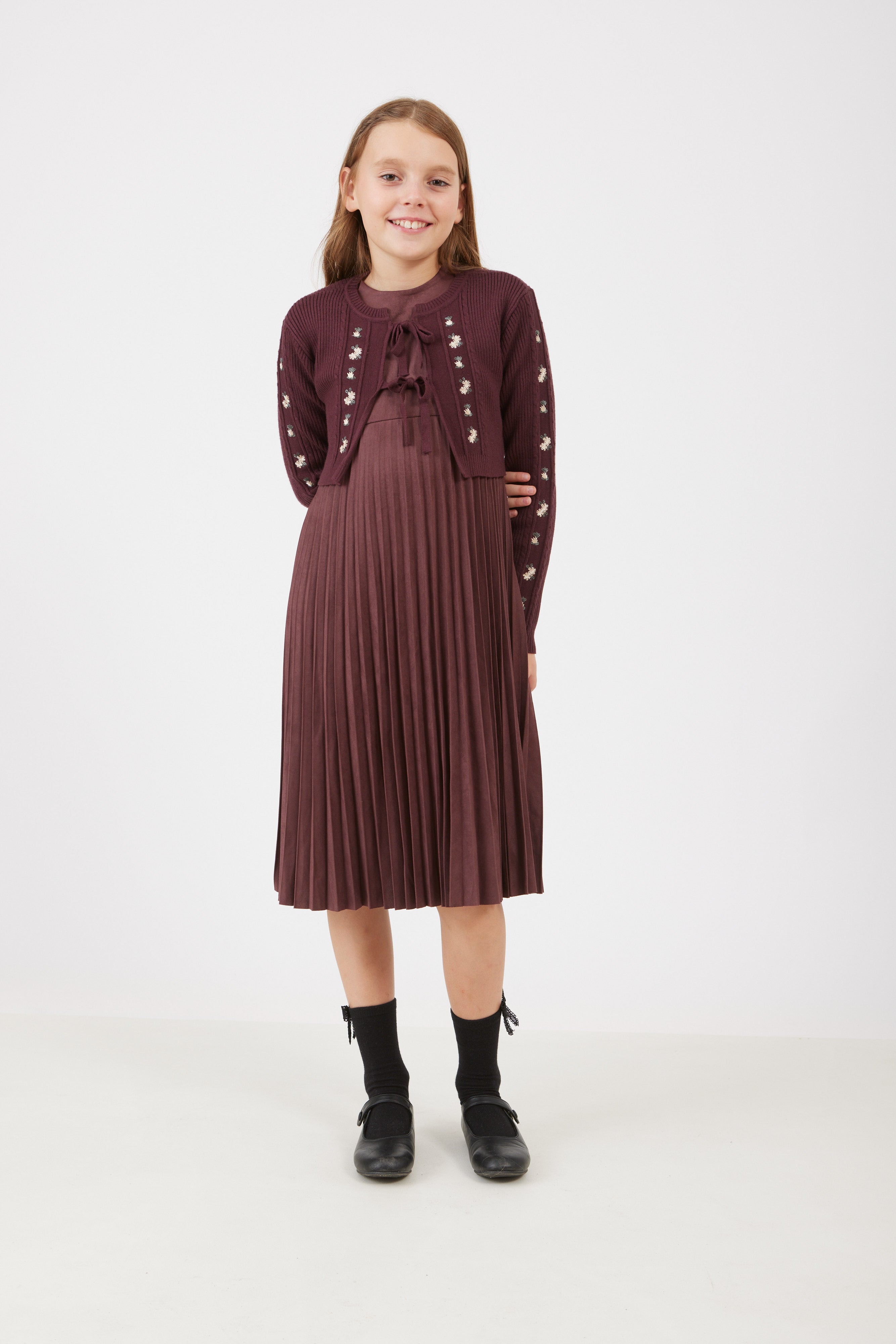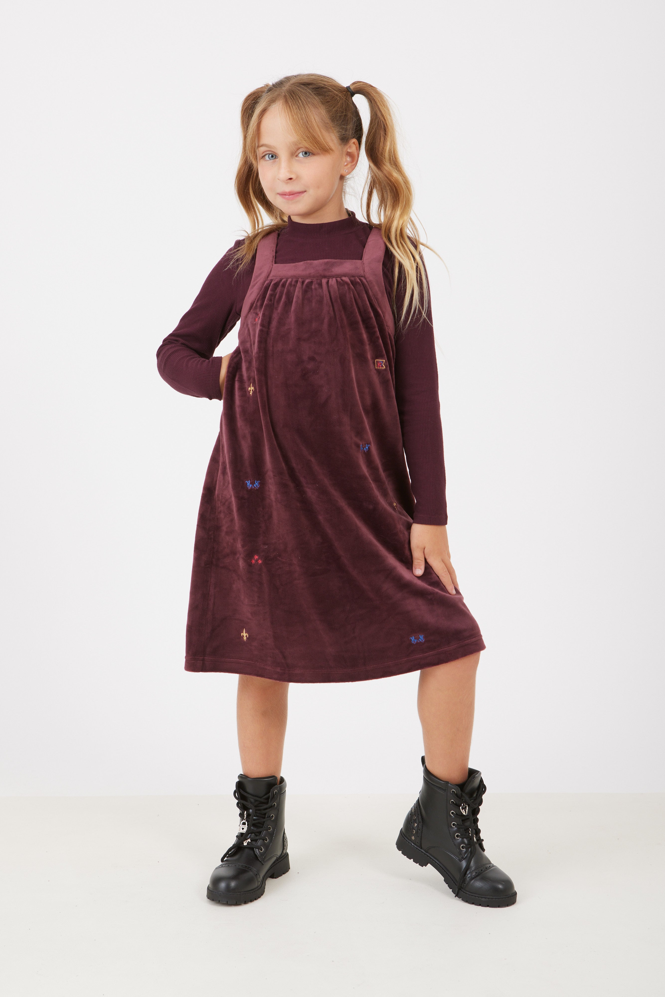 שמלת הדפס קטיפה בשילוב סריג - אבן