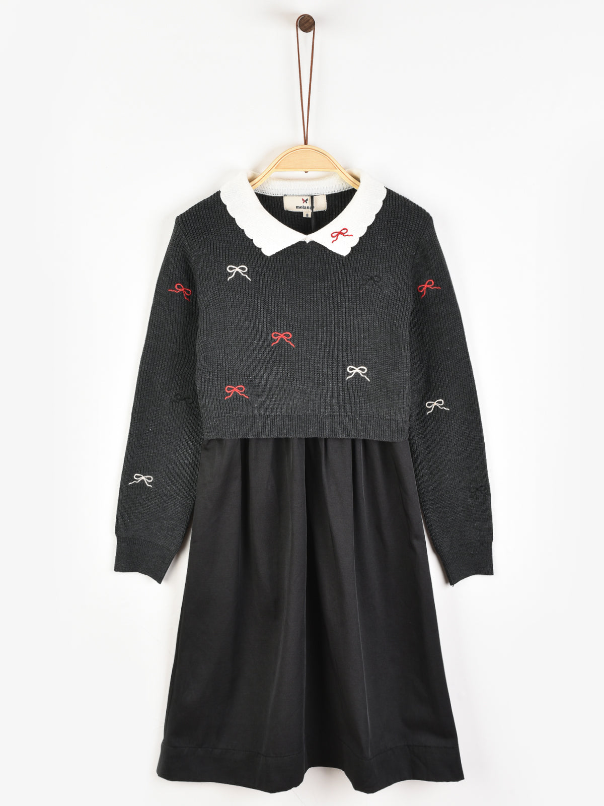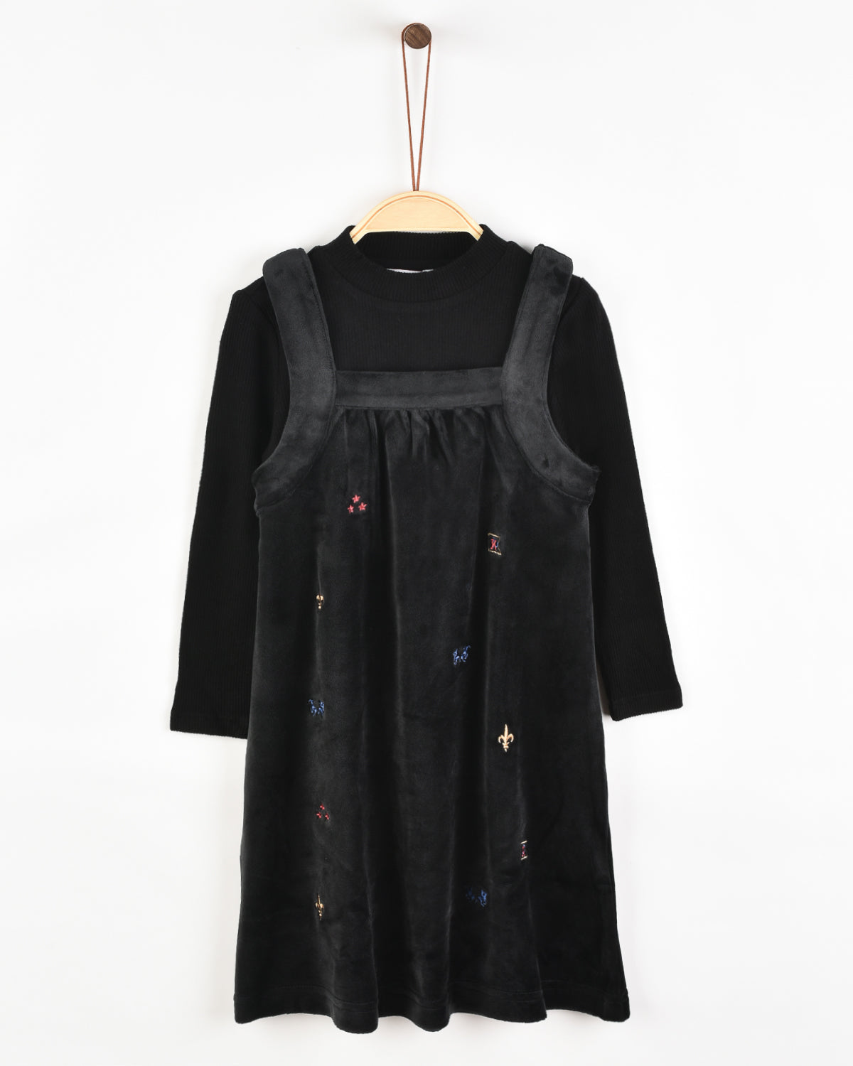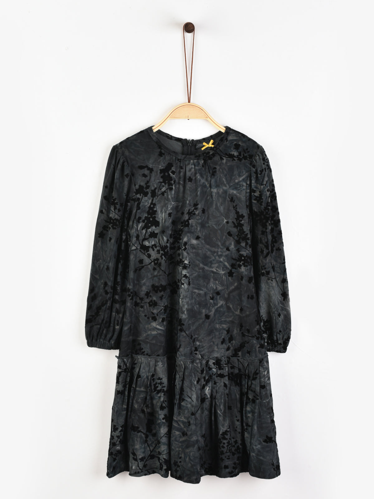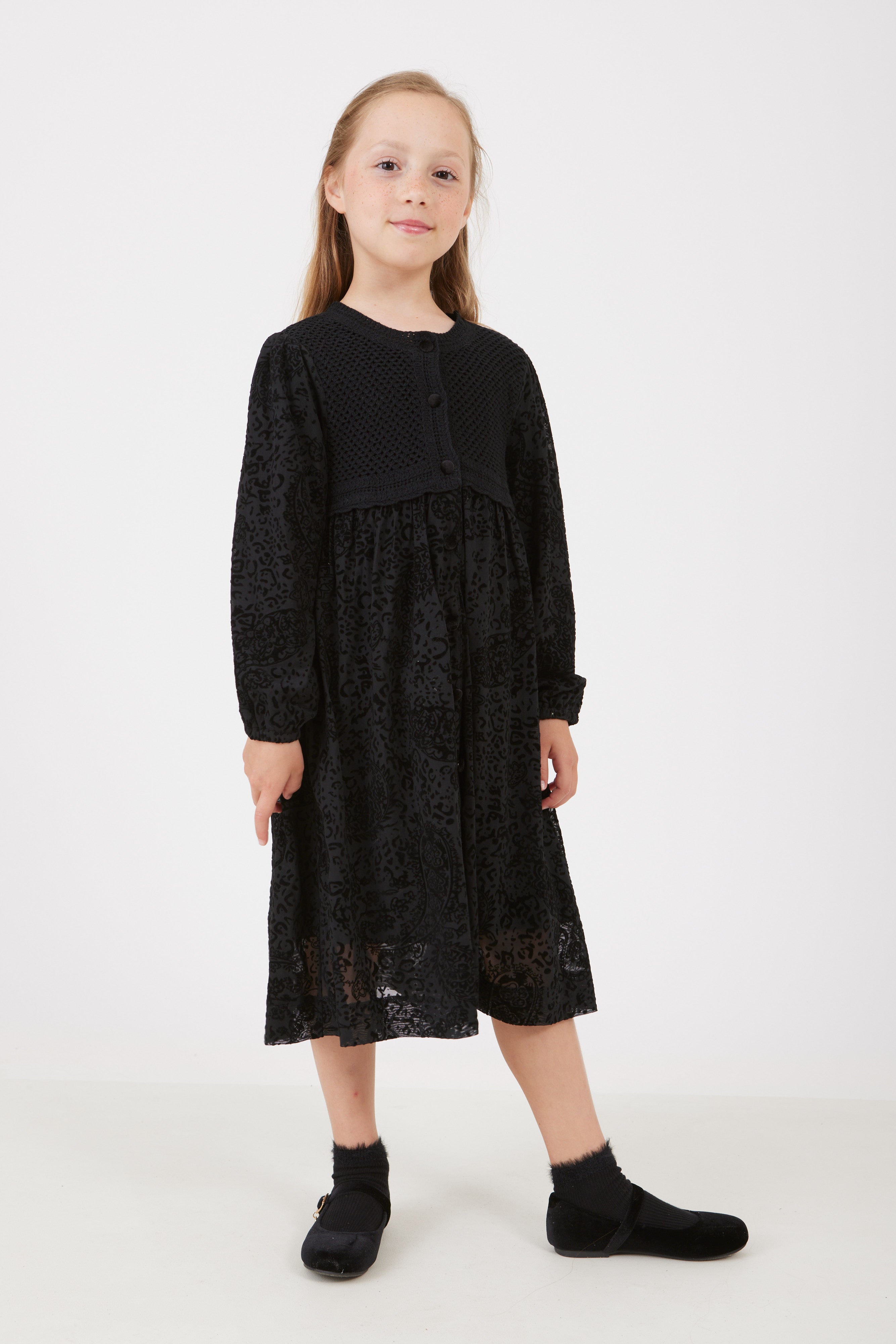שמלת הדפס קטיפה בשילוב סריג - שחור