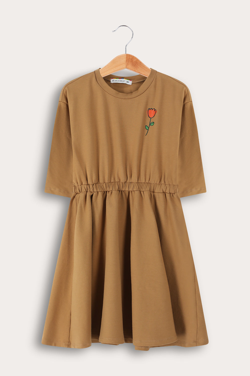 שמלת כיווצים עם הדפס - חום