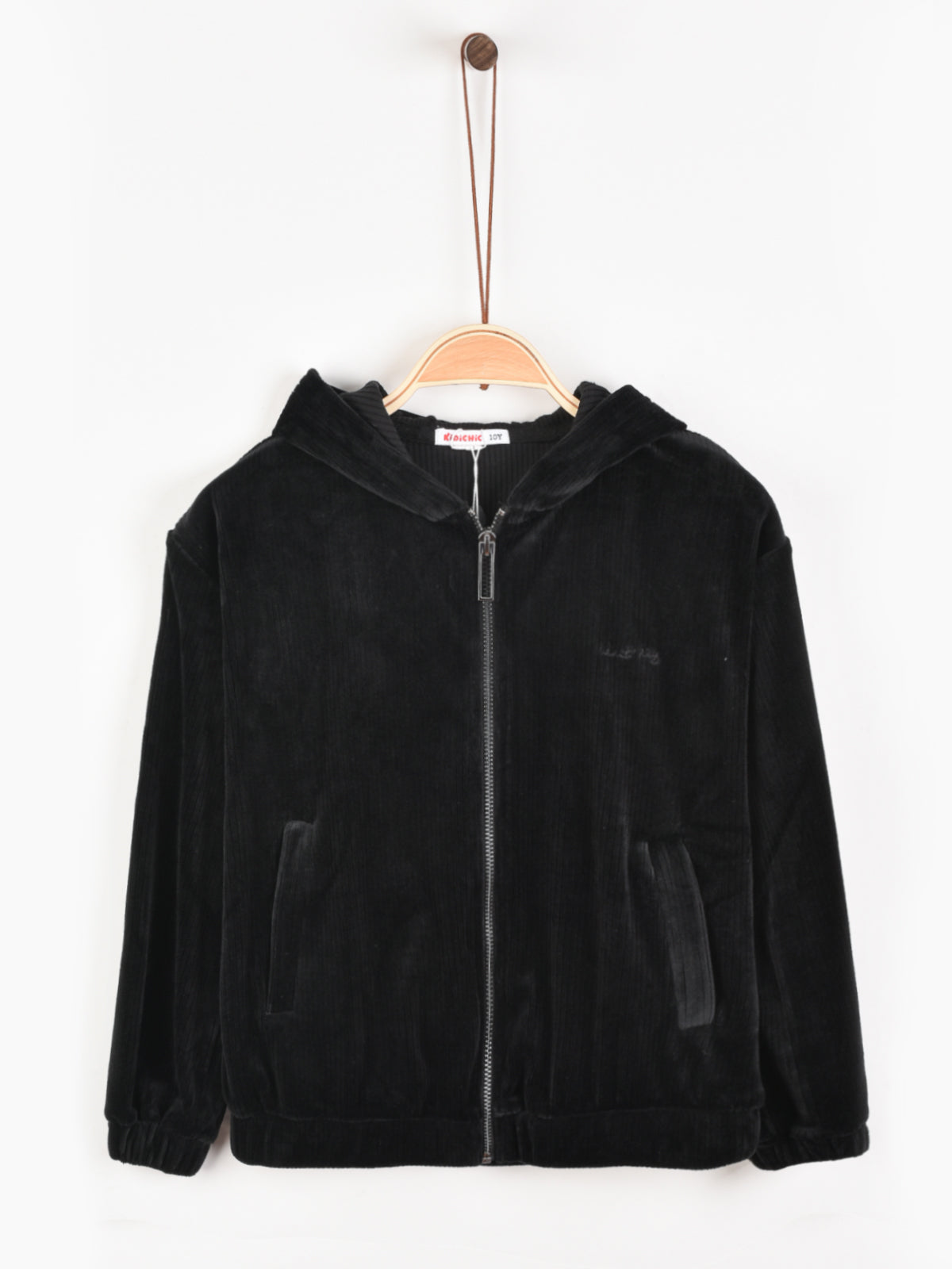 ז'קט קטיפה עם קפוצ'ון - שחור