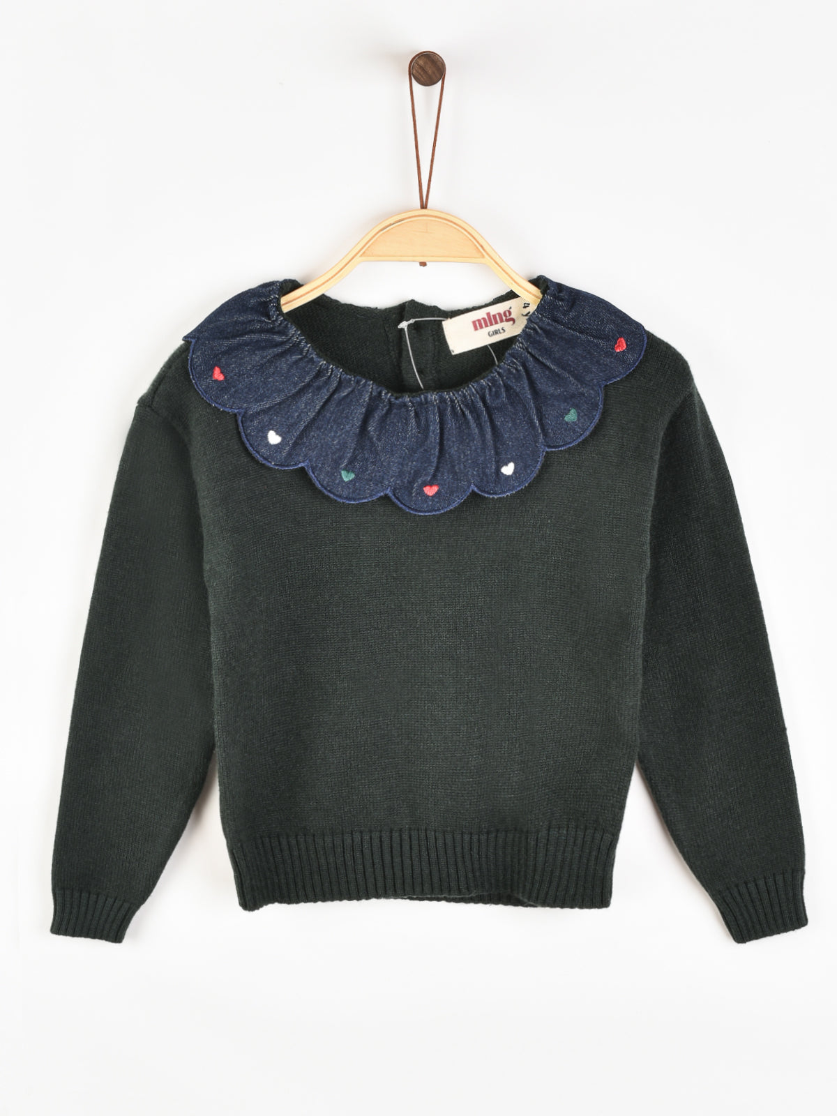 חולצת סריג עם צווארון - ירוק