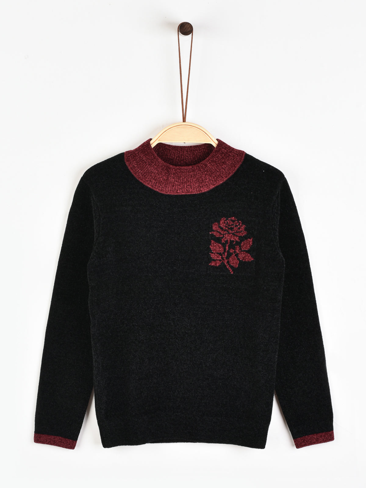 חולצת סריג קטיפתי - בורדו