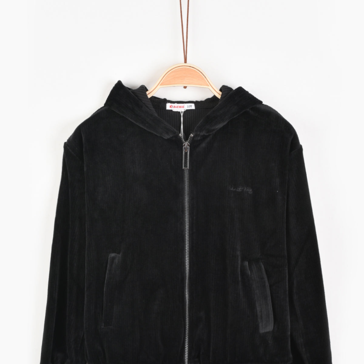 ז'קט קטיפה עם קפוצ'ון - שחור