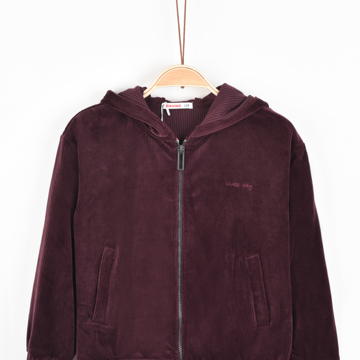 ז'קט קטיפה עם קפוצ'ון - בורדו