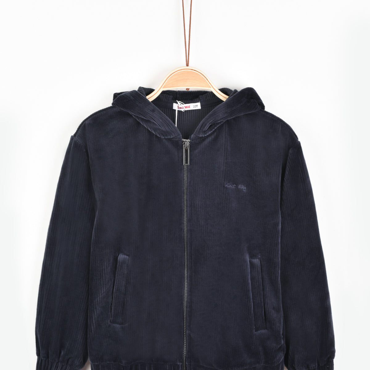 ז'קט קטיפה עם קפוצ'ון - נייבי