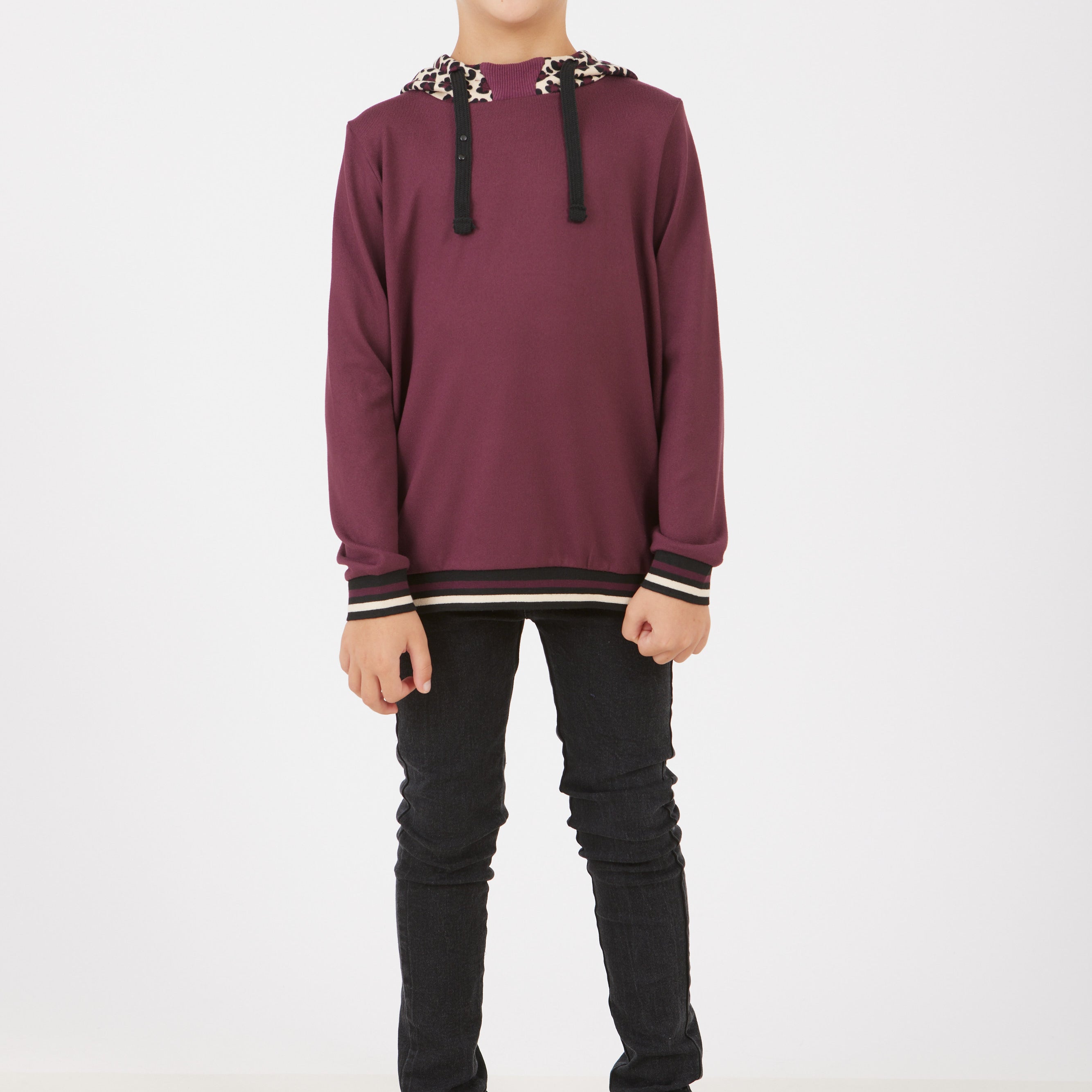 חולצת קפוצ'ון עם שרוכים - בורדו