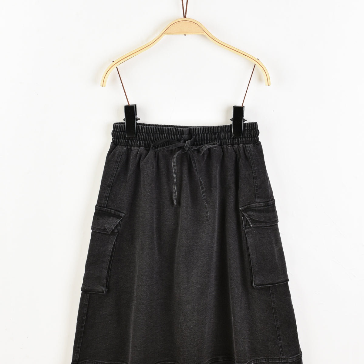חצאית גומי פסים עם כיסים - שחור