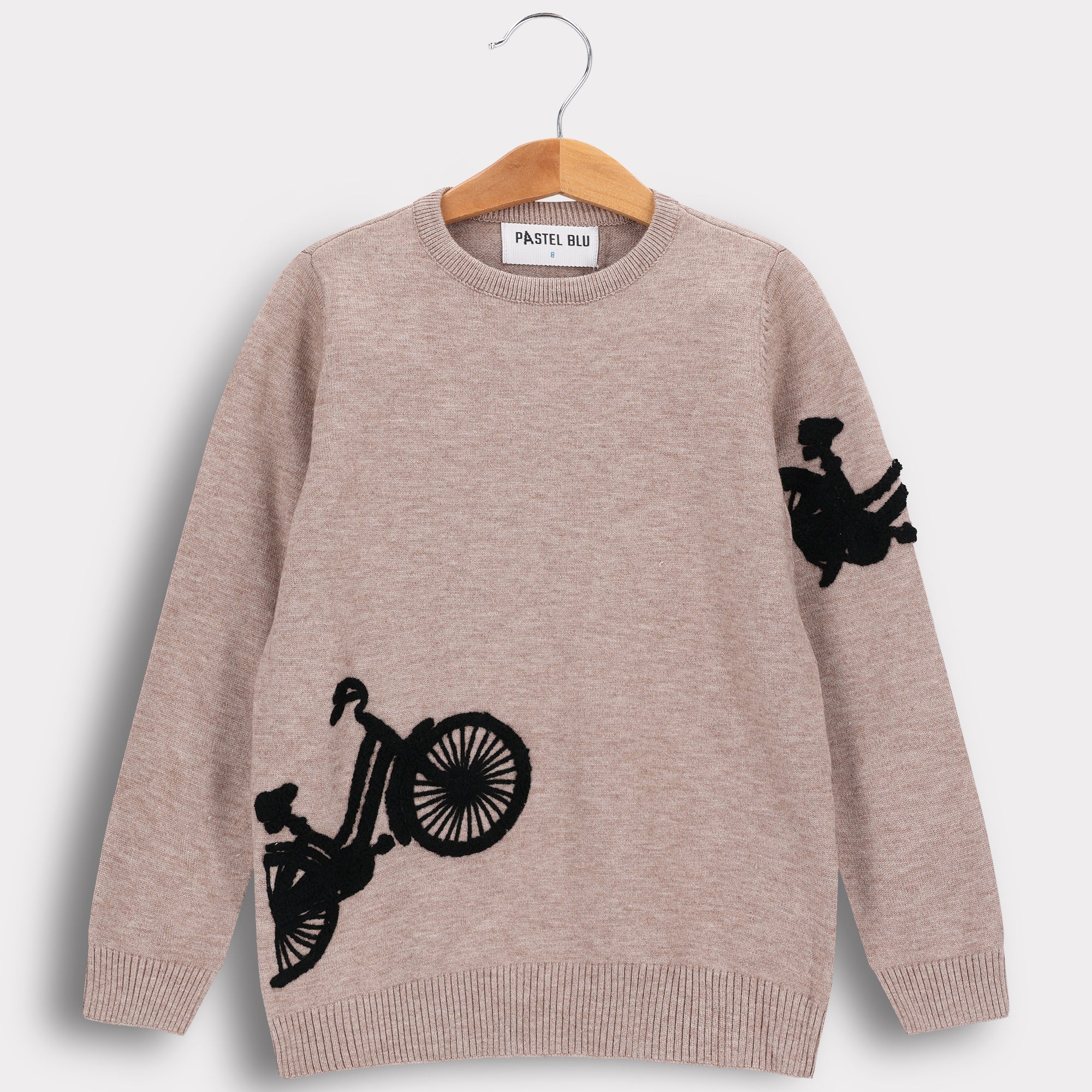 סוודר עם דפוס אופניים - בז'