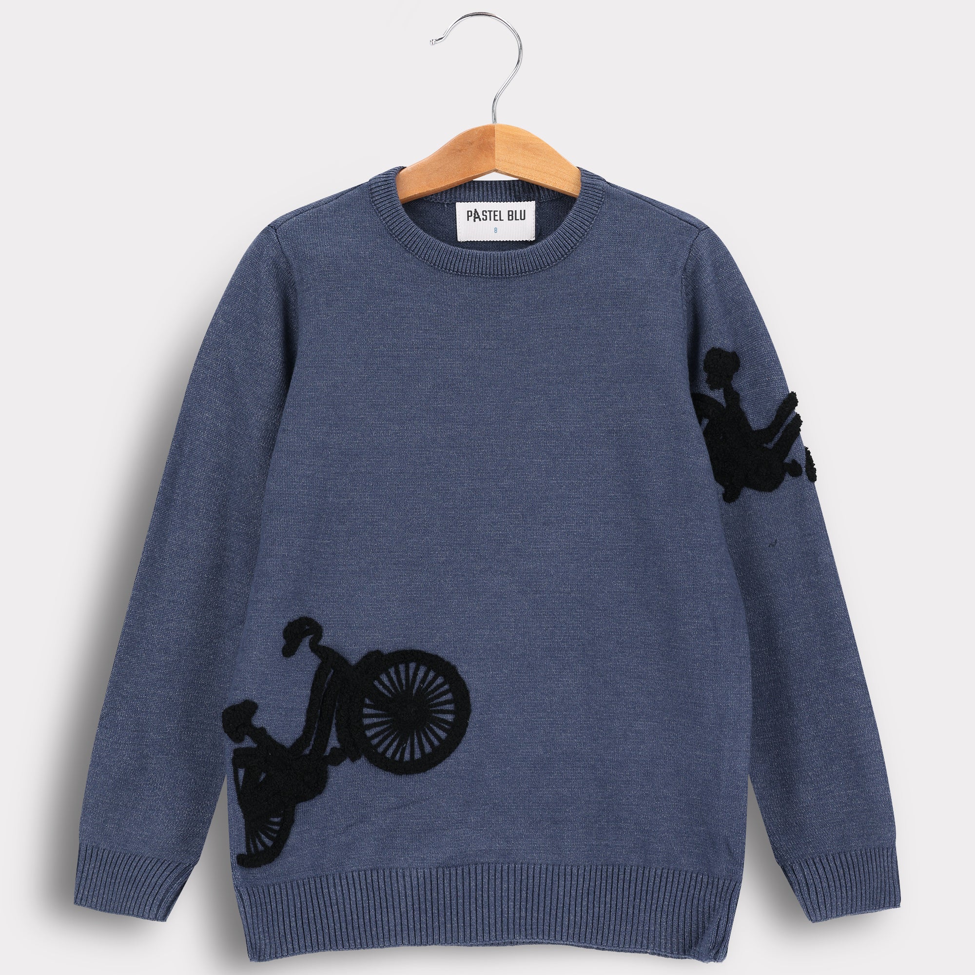 סוודר עם דפוס אופניים - כחול