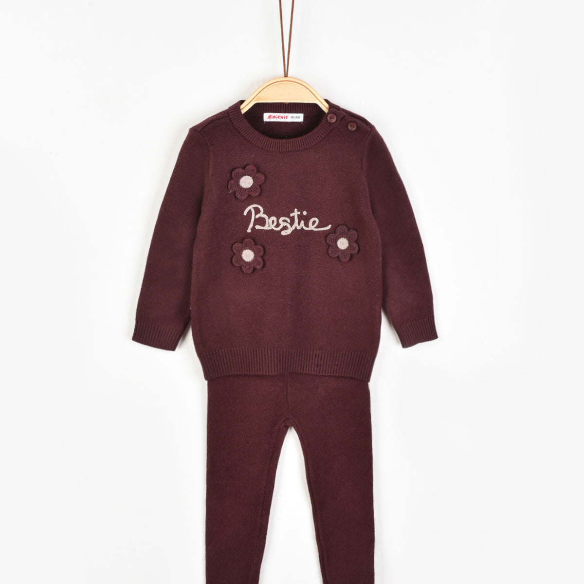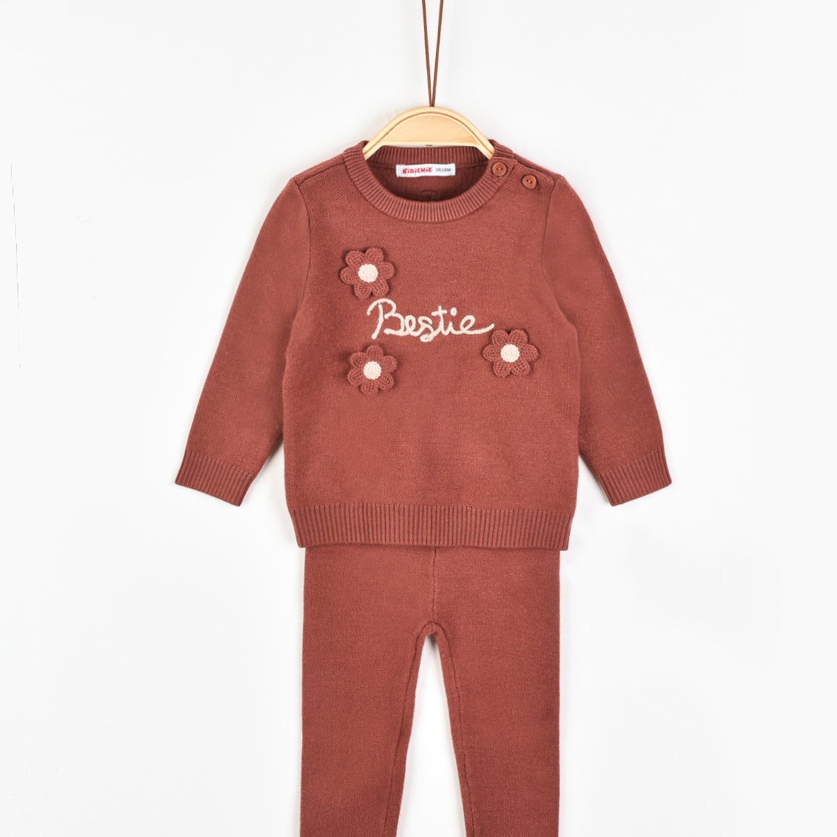 סט בייבי בנות סריג עם פרחי קרושה - BRICK