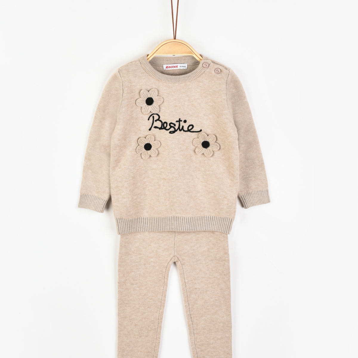 סט בייבי בנות סריג עם פרחי קרושה - בז׳