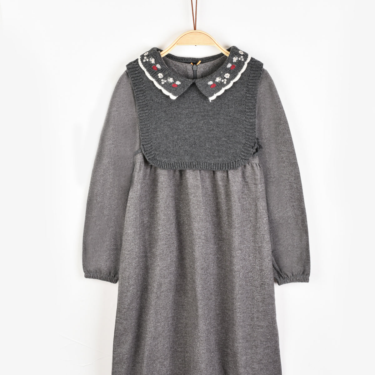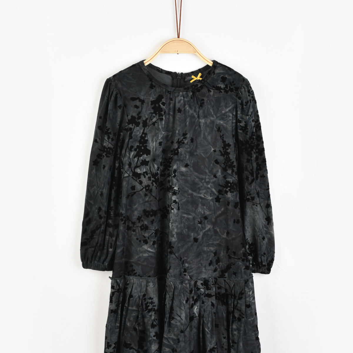 שמלה פרחונית עם צווארון קטיפה - אפור
