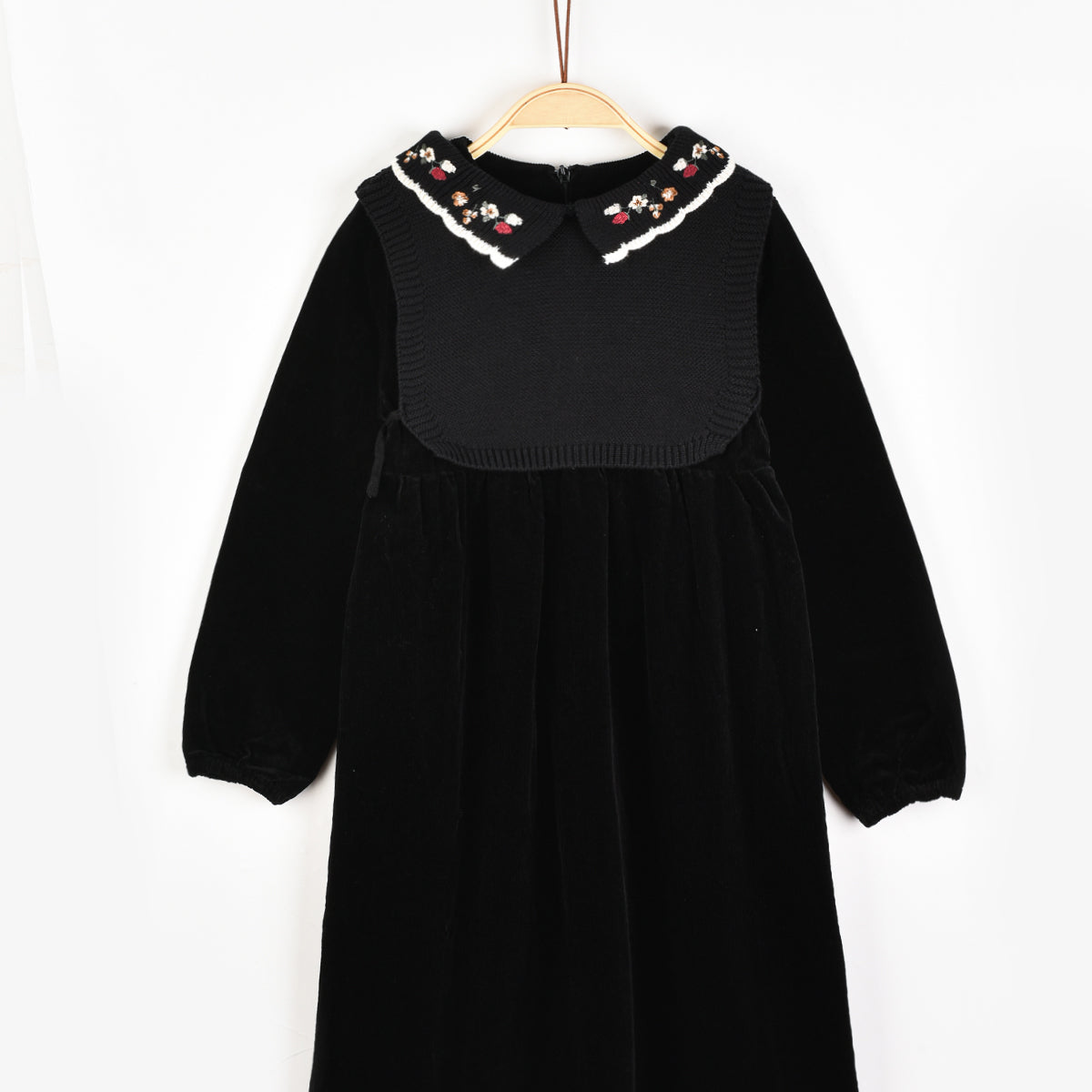 שמלה פרחונית עם צווארון קטיפה - נייבי